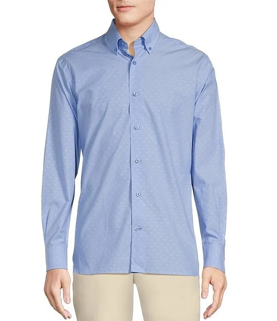 Stretch Oxford Tennis Ball Print Long Sleeve Woven Shirt