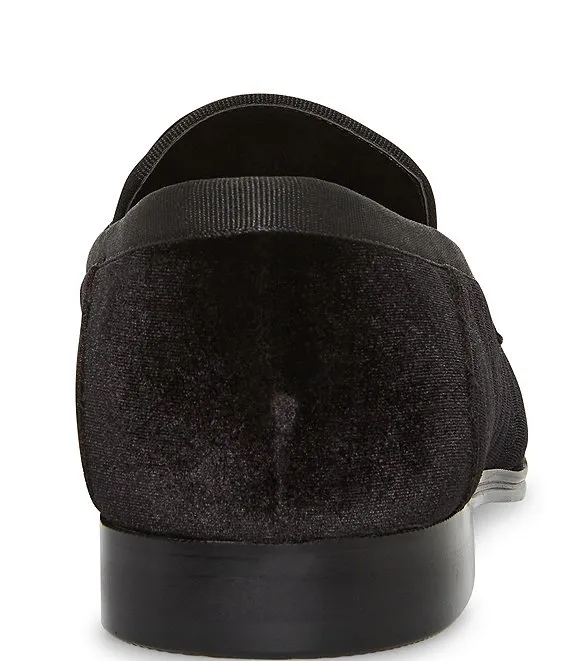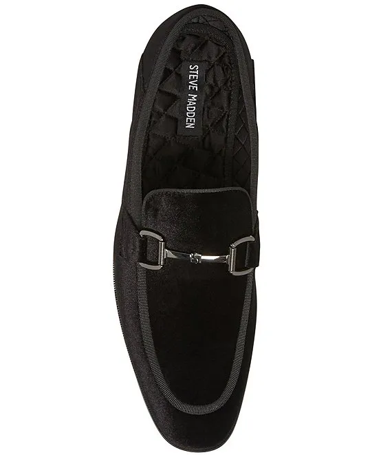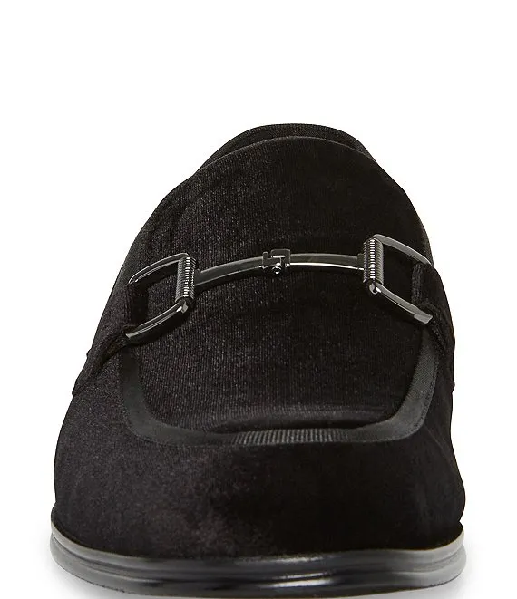 From Steve Madden, the Men's Aahron Velvet Bit Embellishment Dress Slip-On Loafers feature: