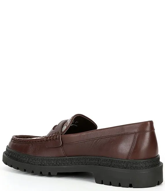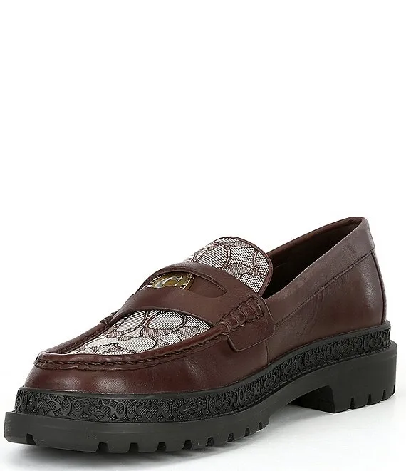 From COACH, the Men's Coin Signature Lug Sole Loafers feature: