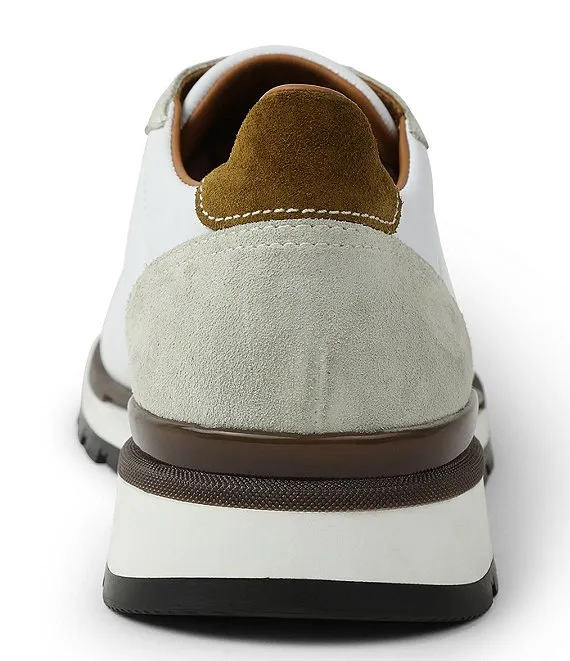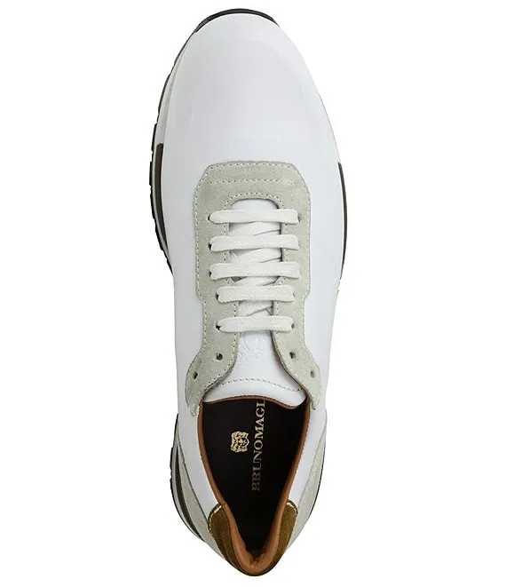 From Bruno Magli, the Men's Davio Leather Lace-Up Sneakers feature: