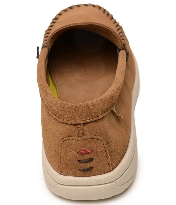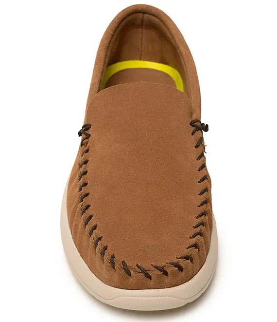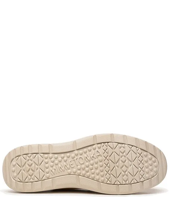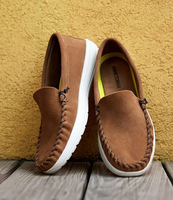 From Minnetonka, the Men's Discover Classic Suede Slip-Ons feature: