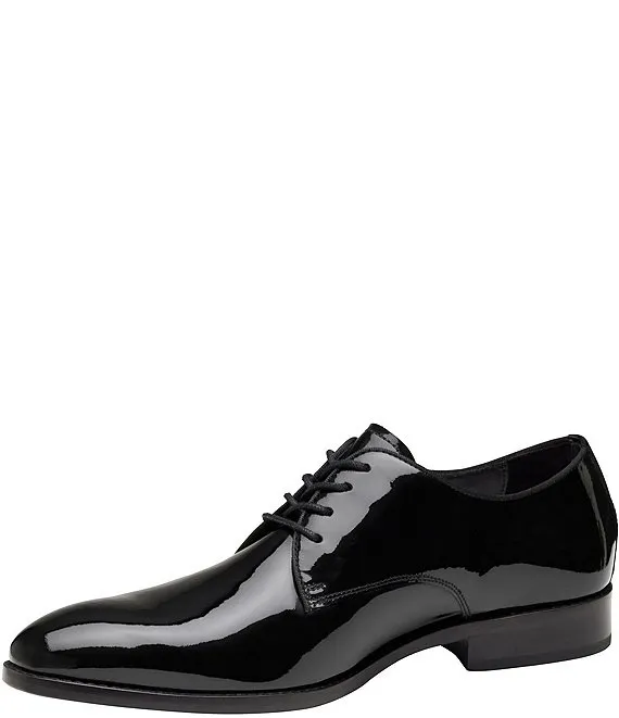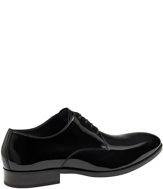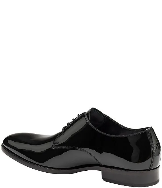 From Johnston & Murphy, the Men's Gavney Patent Leather Plain Toe Oxfords feature: