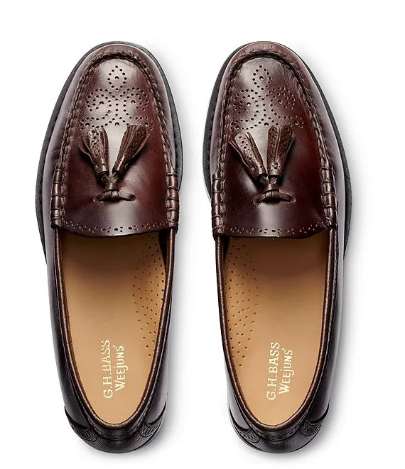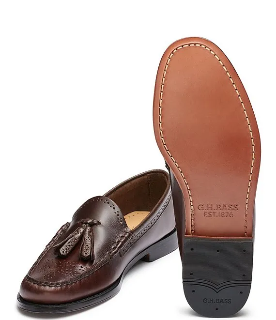 From G.H. Bass, the Men's Larkin Tassel Brogue Leather Weejun Loafers feature: