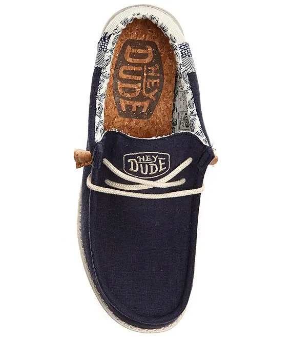 From HEYDUDE, the Men's Wally Linen Washable Slip-Ons feature: