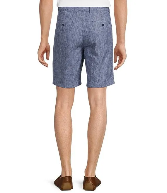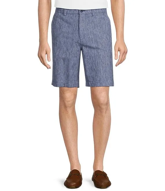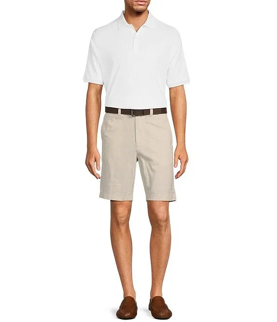 Casuals Flat Front Classic Fit 9" Inseam Solid Linen Shorts