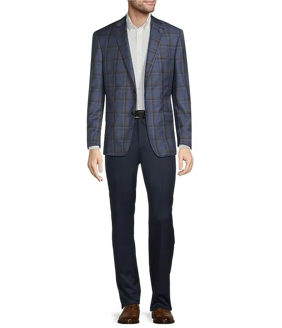 New York Fit Open Blue Plaid Pattern Sport Coat