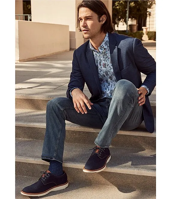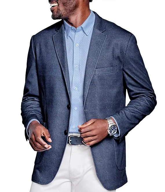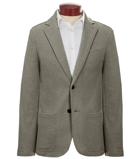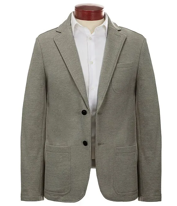 Slim Fit Notch Lapel Unstructured Inlet Knit Stretch Blazer