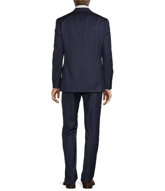 New York Modern Fit Flat Front Striped Pattern 2-Piece Suit