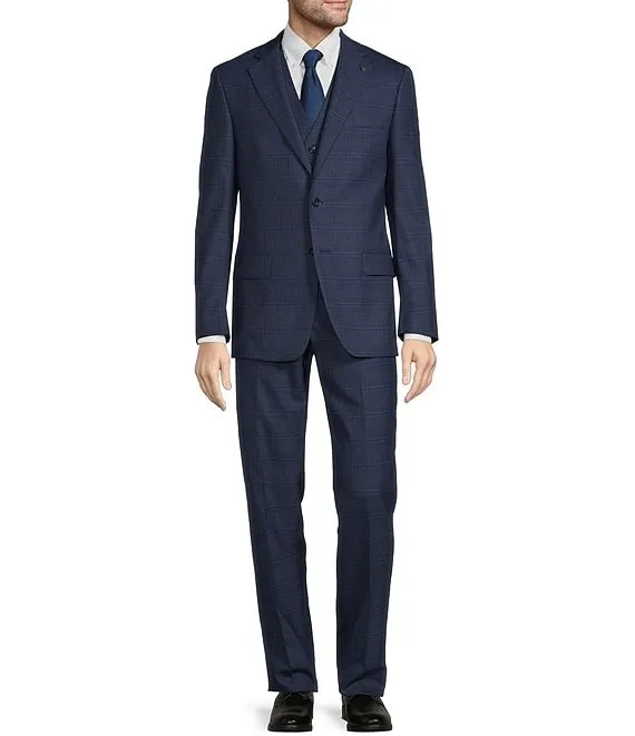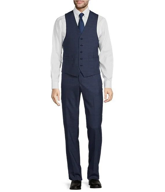 New York Modern Fit Flat Front Plaid Pattern 3-Piece Vested Suit