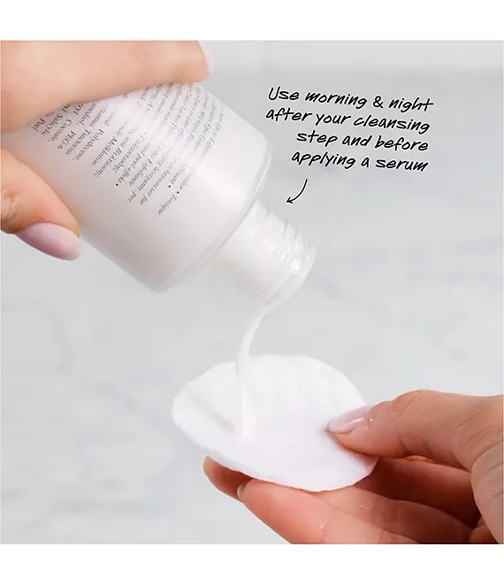 - Twice daily, moisten a cotton pad with this exfoliating toner and gently swipe along a clean and dry face, avoiding eye area