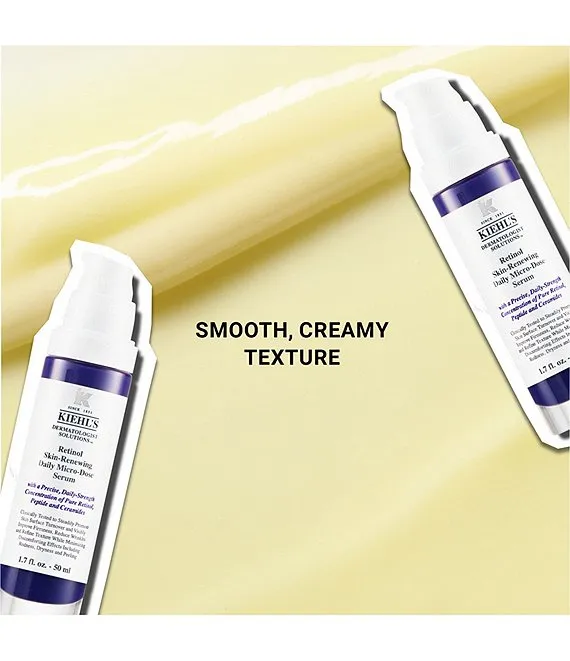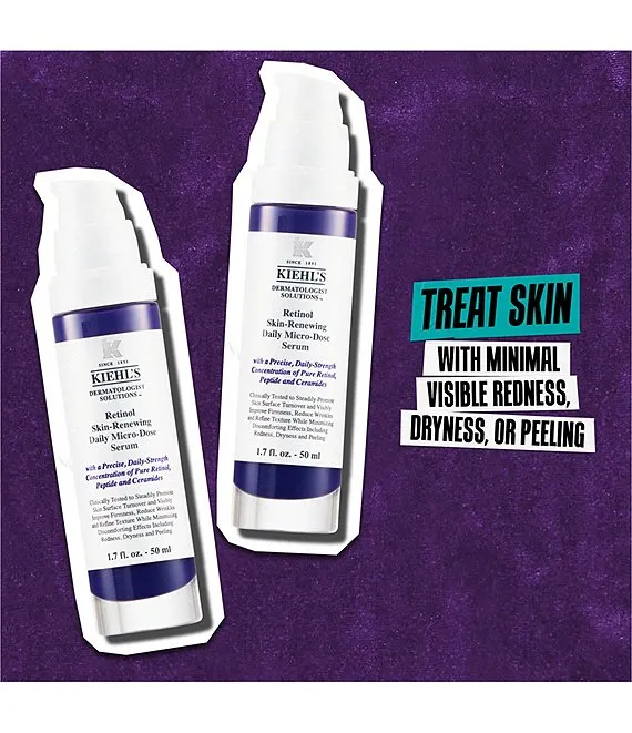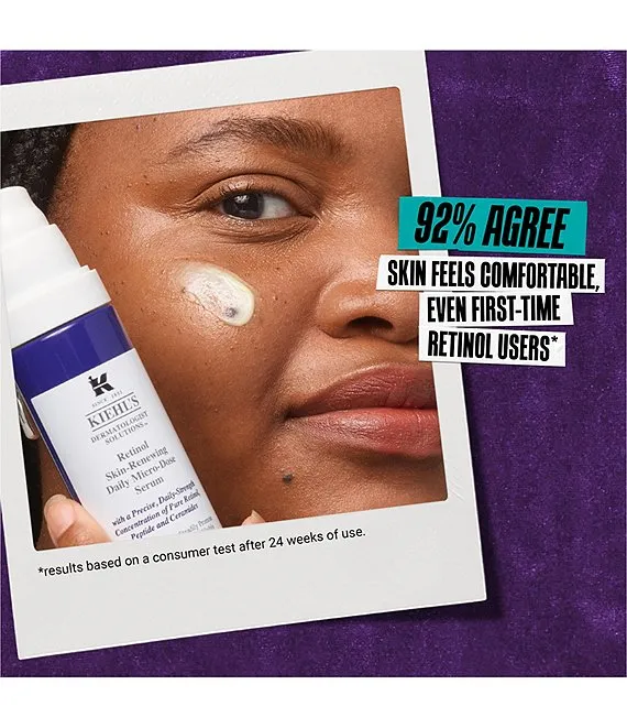 Reduce wrinkles with Retinol Skin-Renewing Daily Micro-Dose Serum. After cleansing, apply over the entire face, including the under eye and crow's feet area, carefully avoiding contact with the eye, eye lid area, and lips. If applied during the day, Kiehl's serum with Retinol should always be used with SPF.