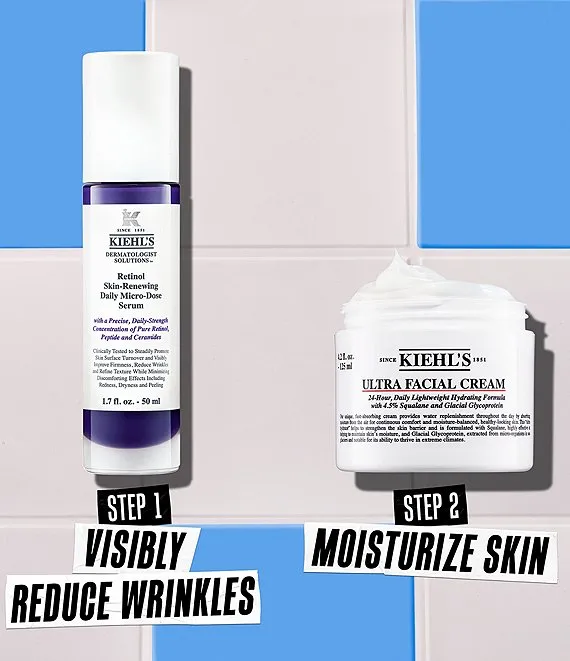 An anti-aging gift set featuring Kiehl's gentle retinol serum and #1 best-selling moisturizer to help visibly reduce wrinkles and deeply hydrate skin. $159 Value!