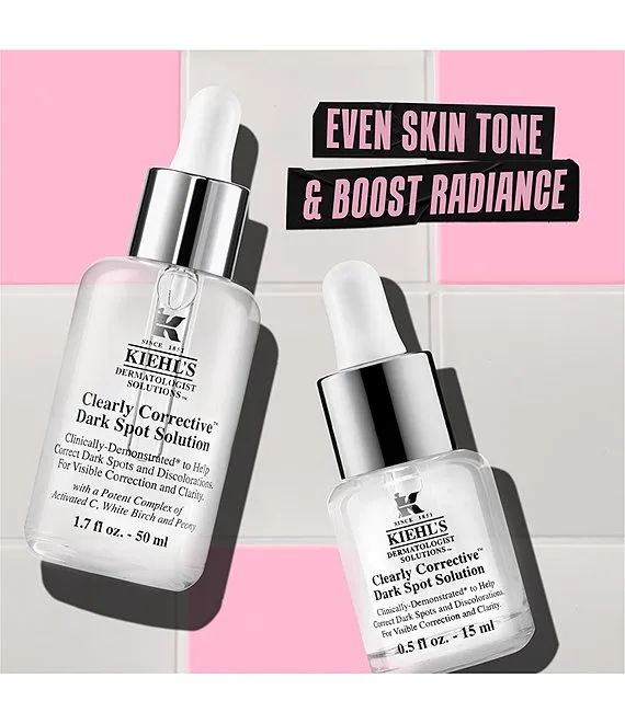 A targeted dark spot corrector that helps even skin tone and boost radiance. This efficacious brightening serum helps visibly reduce the appearance of a broad array of discolorations including dark spots, hyperpigmentation and post-acne marks. Kiehl's dark spot corrector has been tested on all ethnicities and is suitable for all skin types, including sensitive skin.