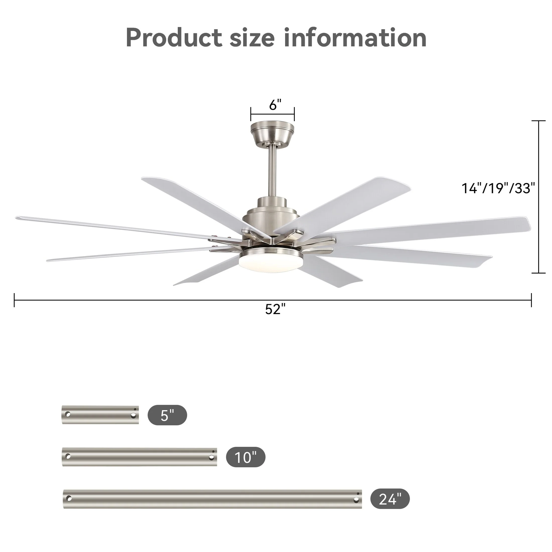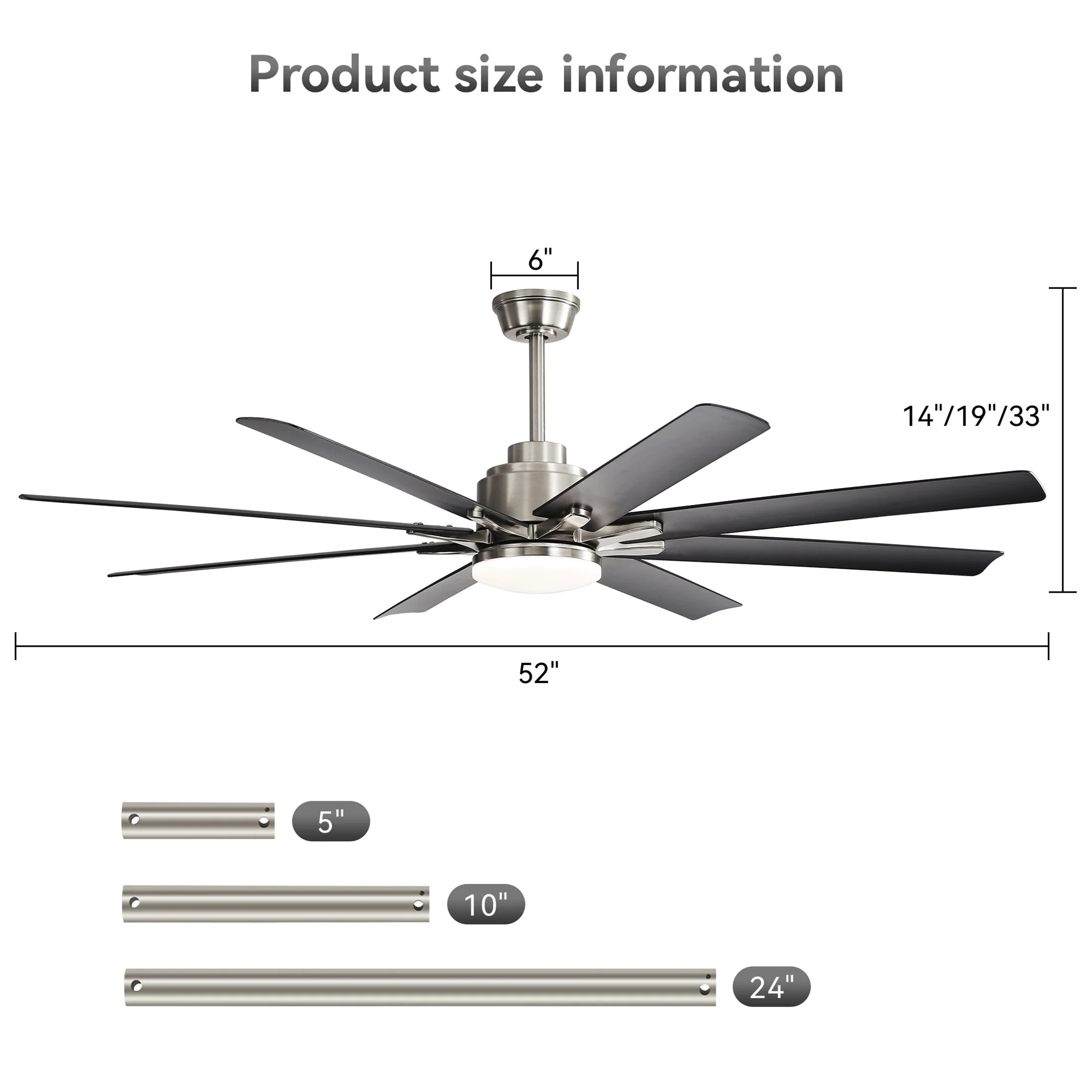 52" Indoor Ceiling Fan with Light, 5 Solid Wood Blades Smart Remote Control Reversible DC Motor Ceiling Fan
