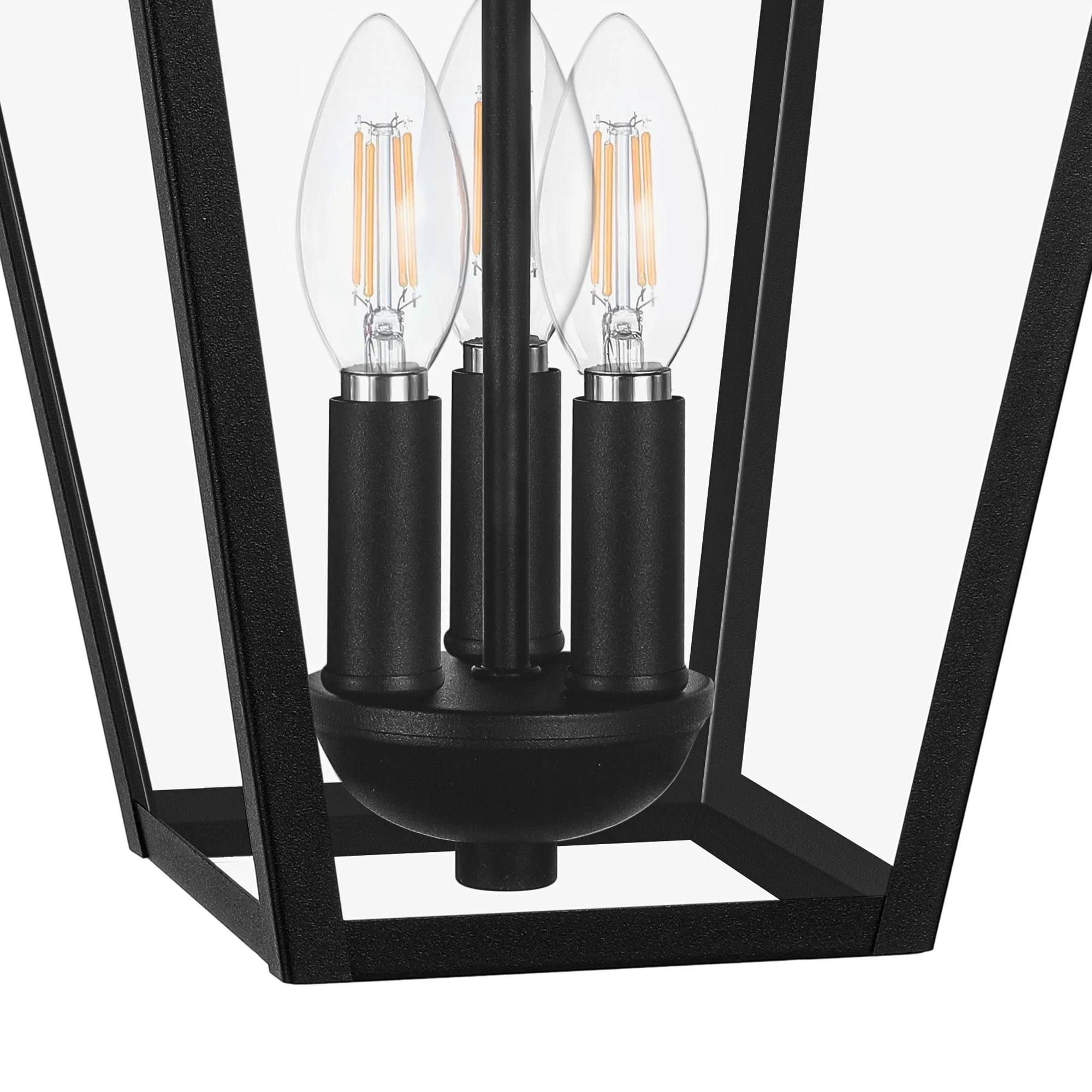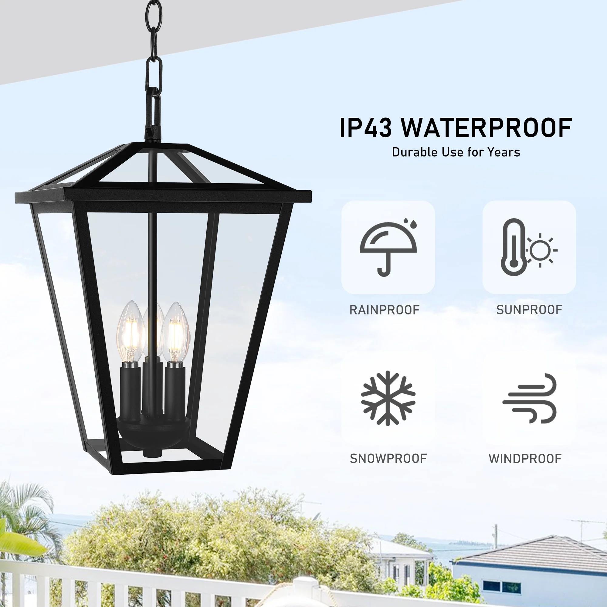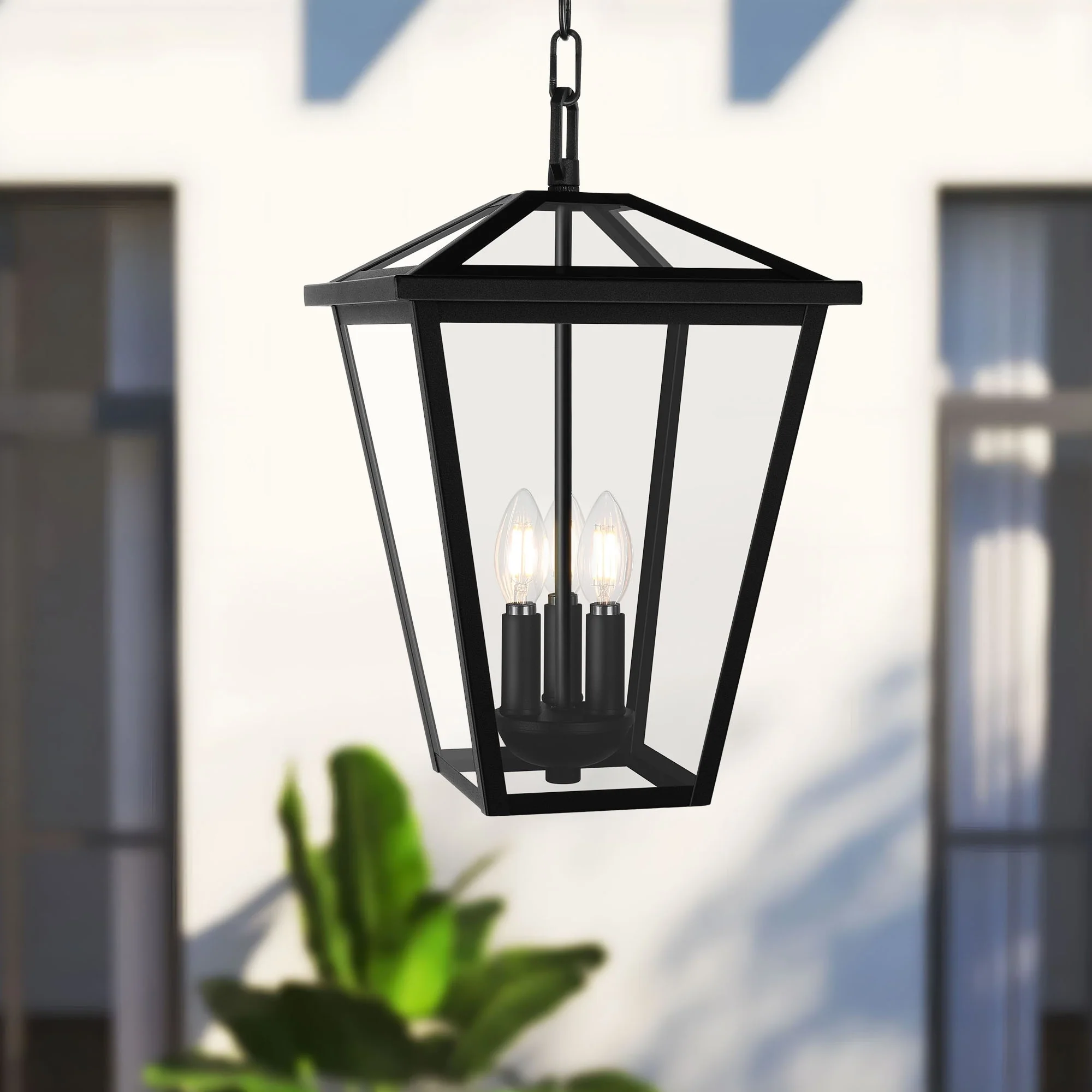 3-Light Black Outdoor Hanging Light Fixture with Clear Beveled Glass
