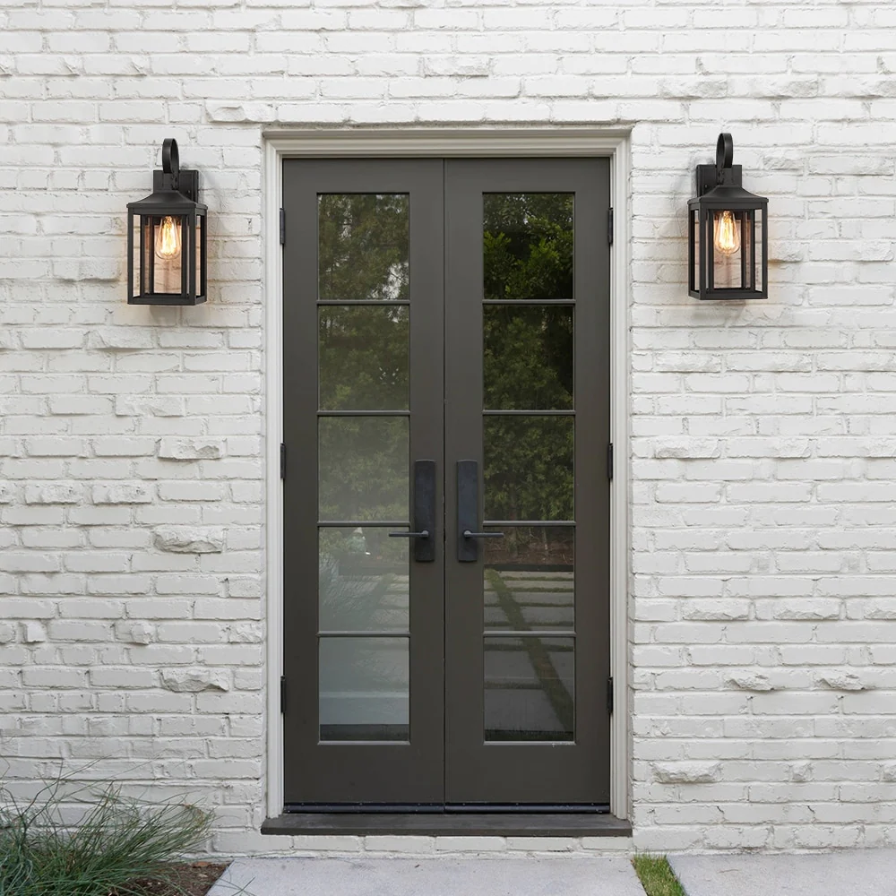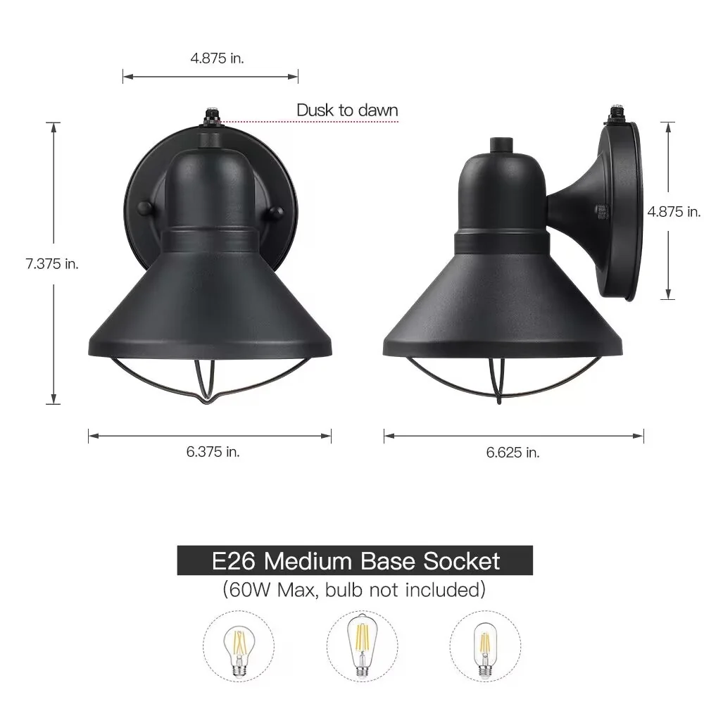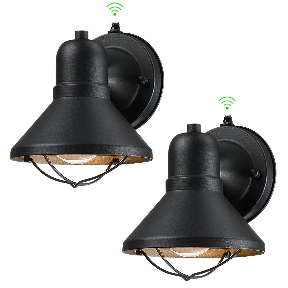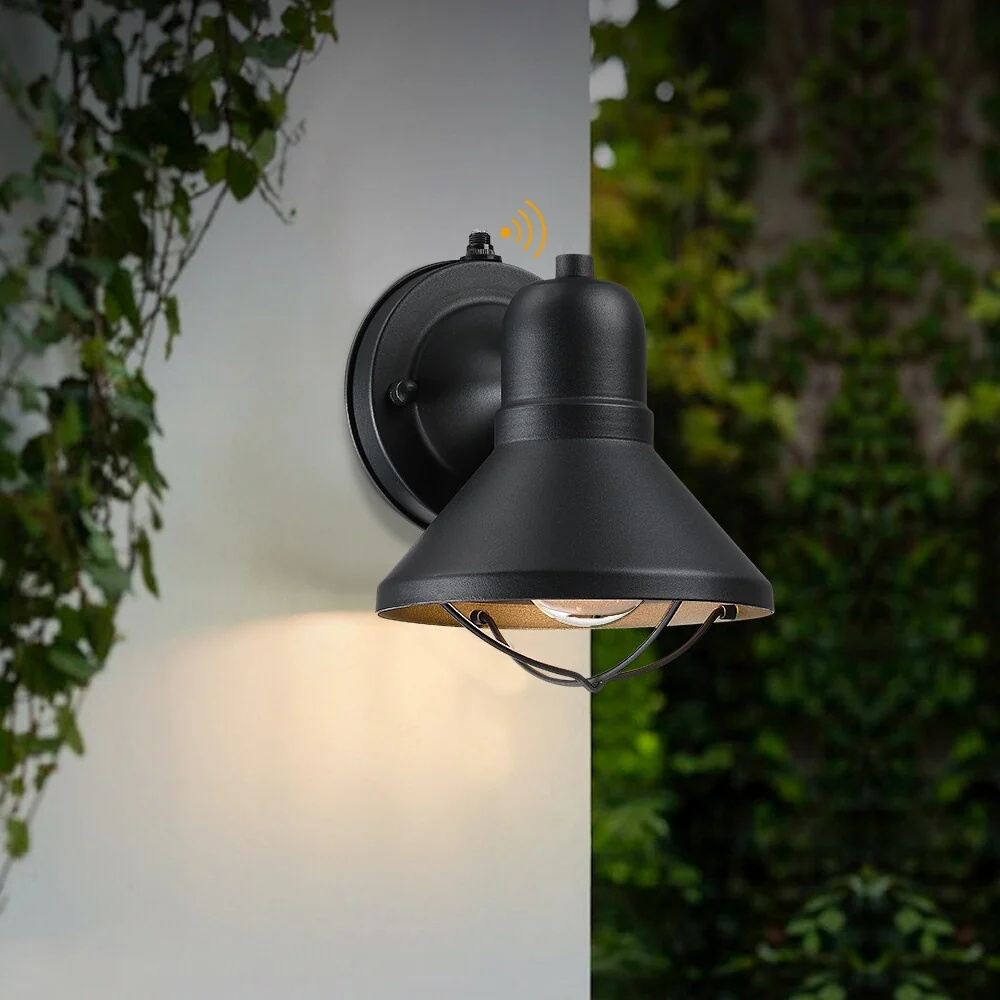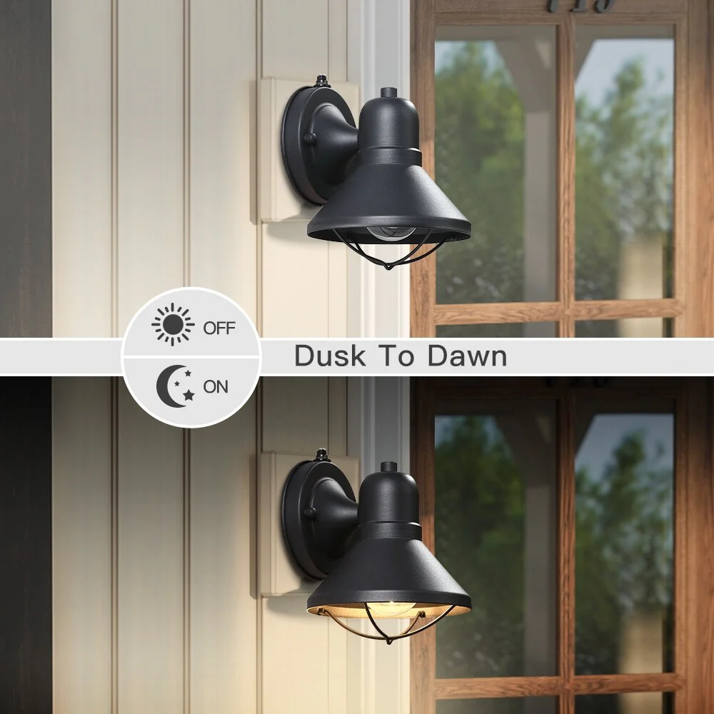 Black Outdoor Dusk to Dawn Wall Sconce Light - Set of 2