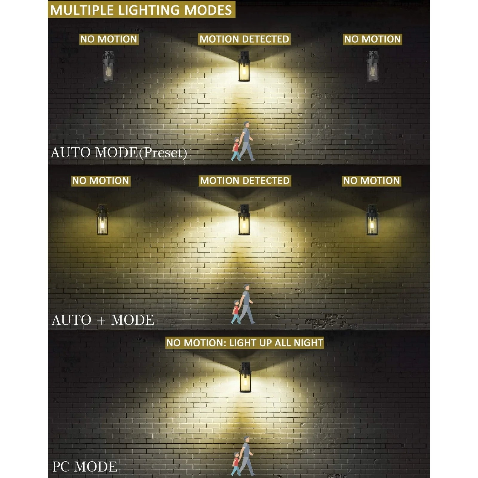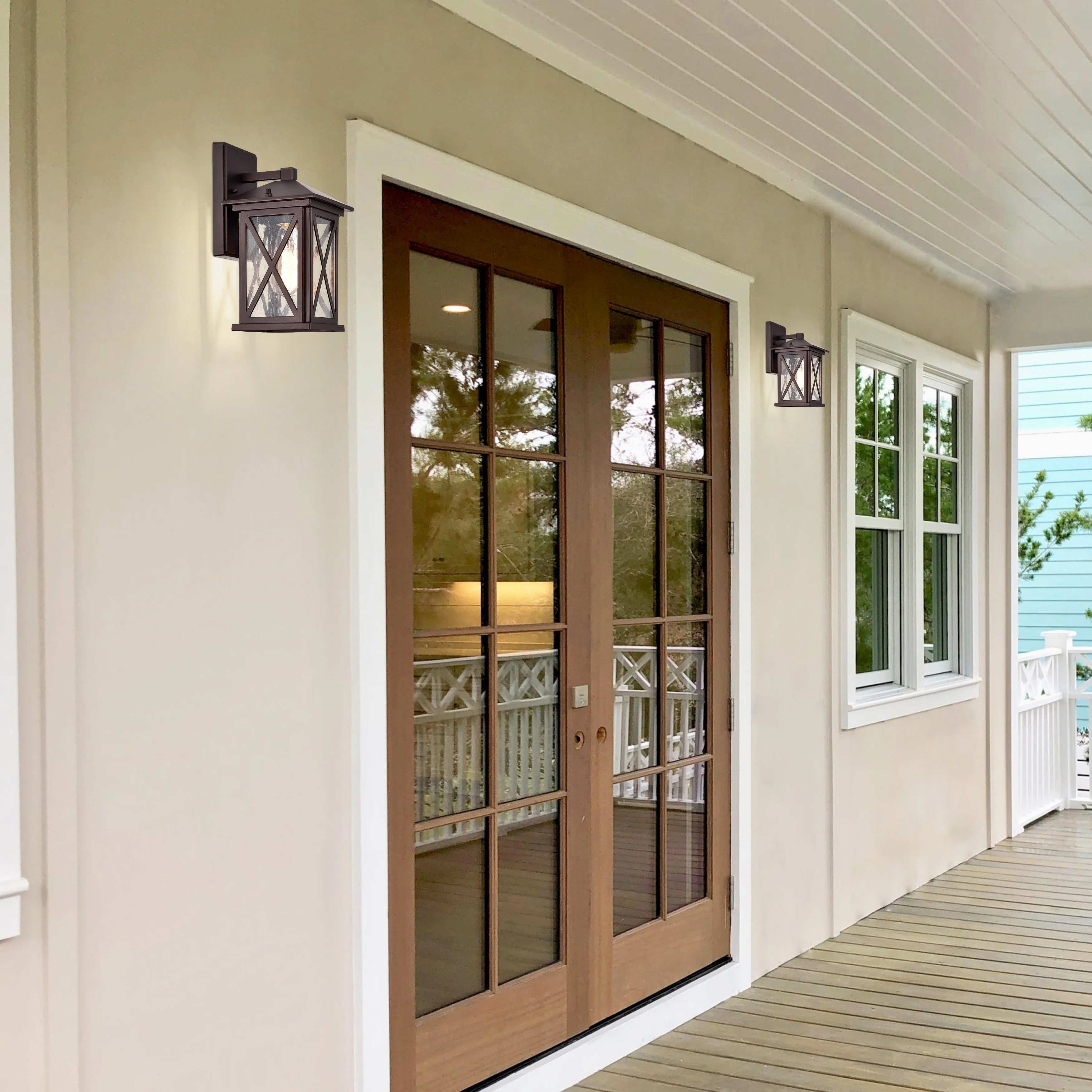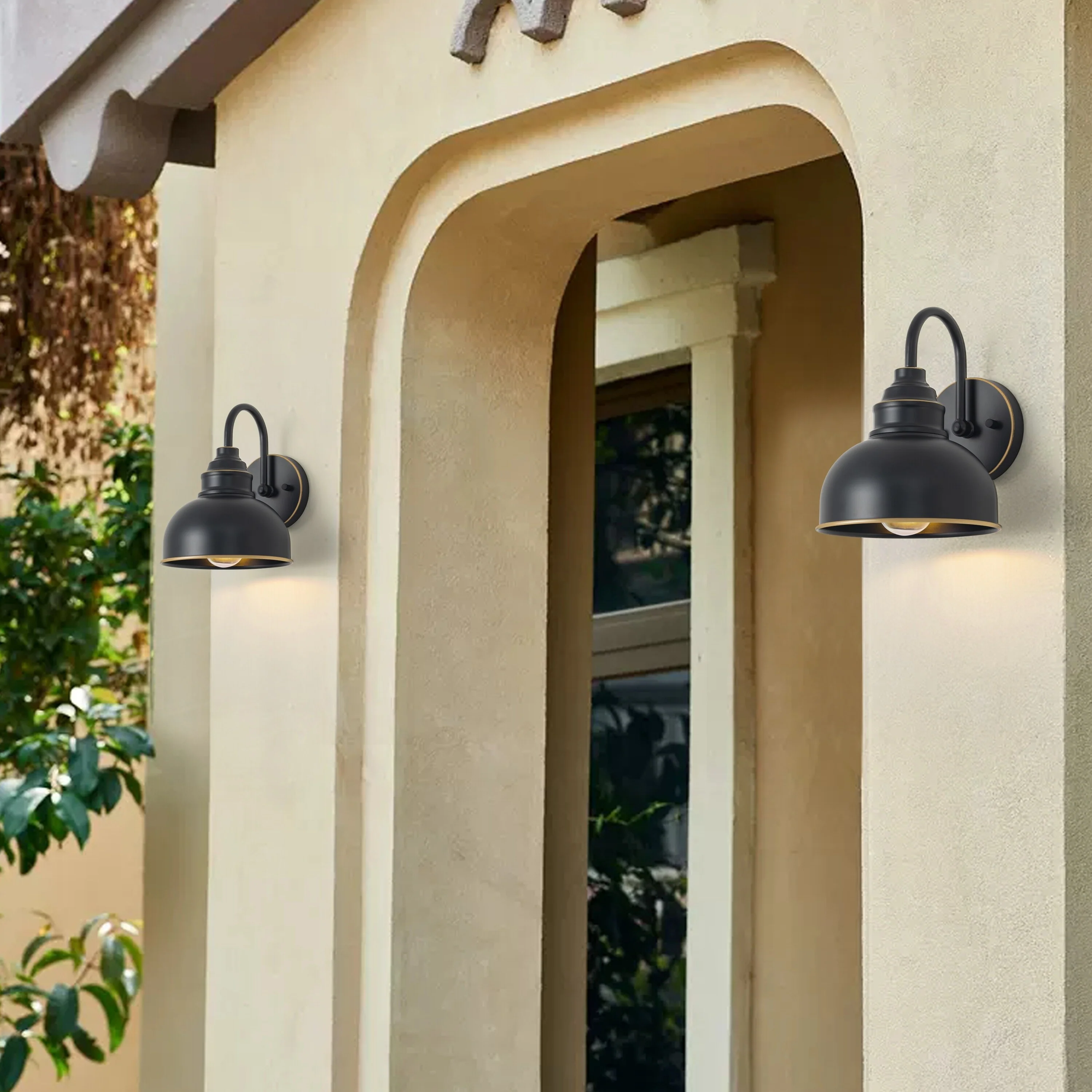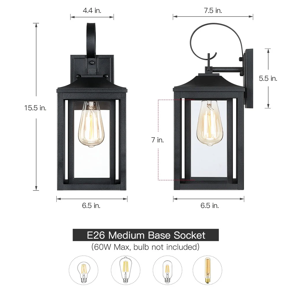 Black Outdoor Dusk to Dawn Wall Sconce Light - Set of 2