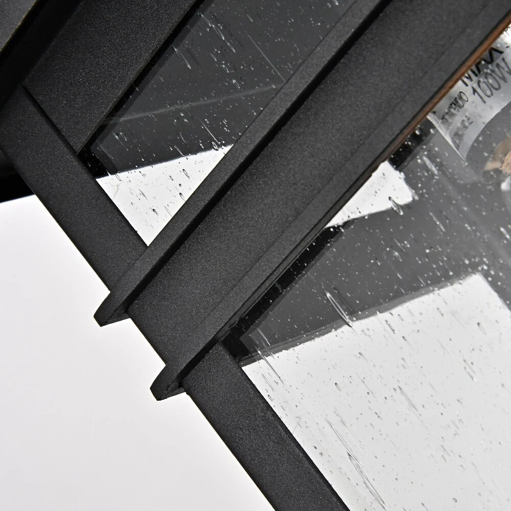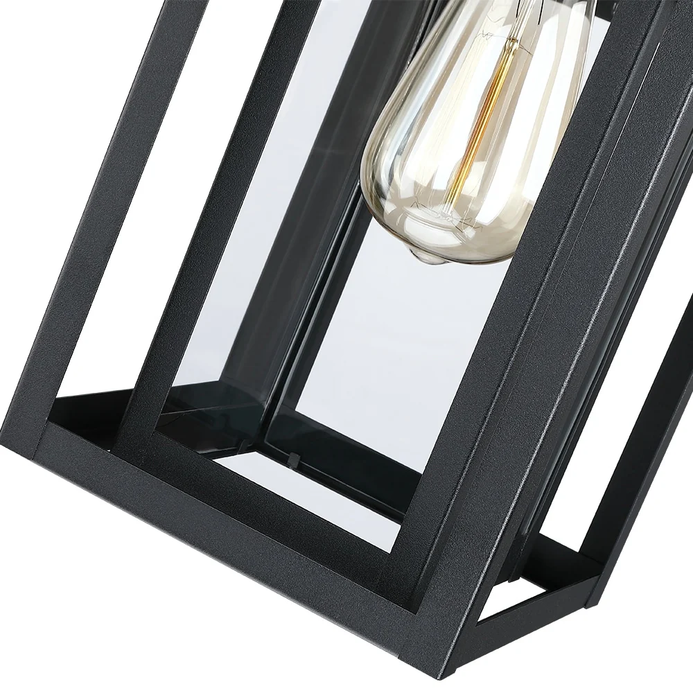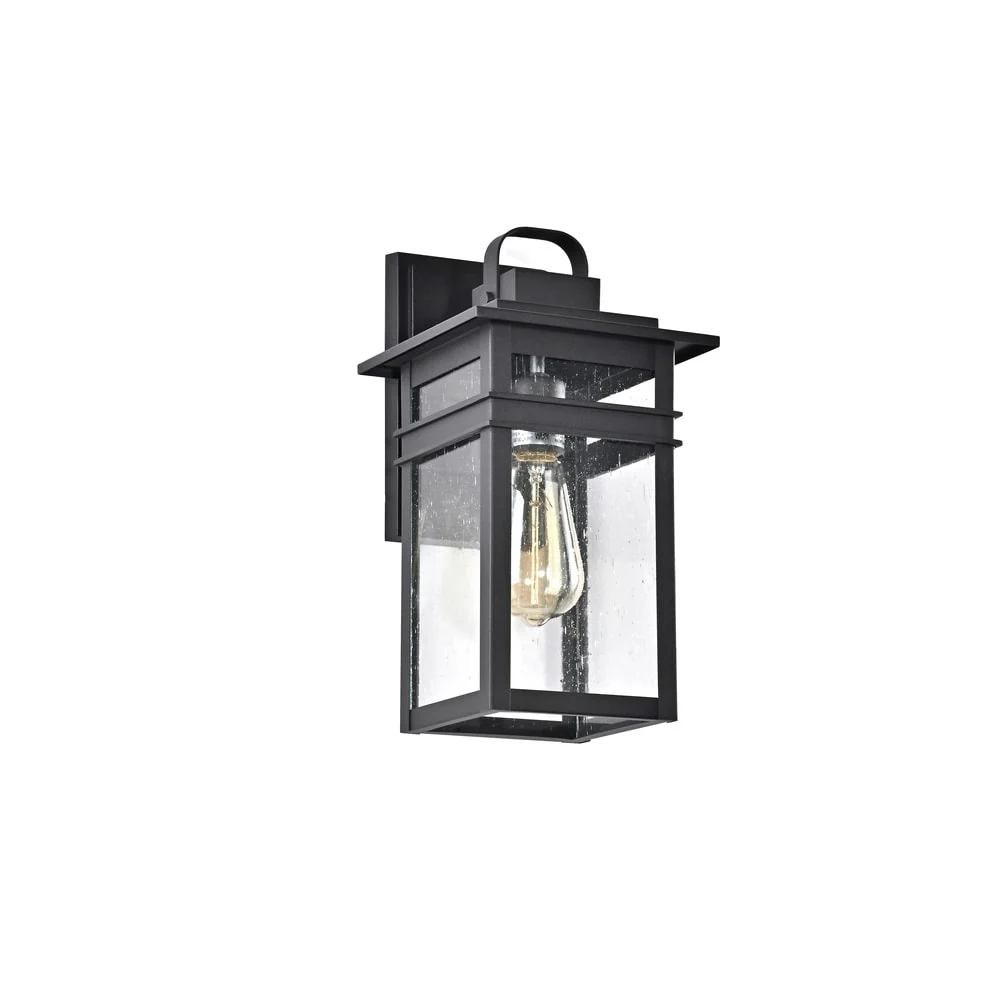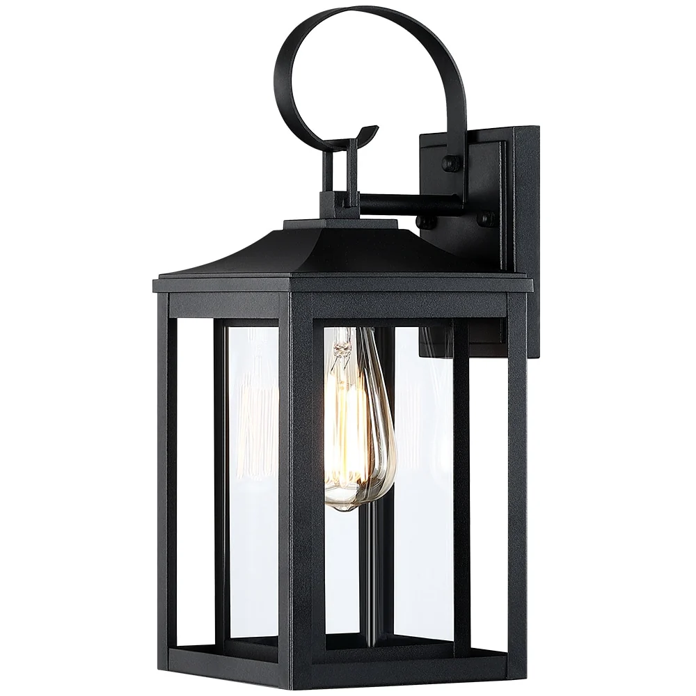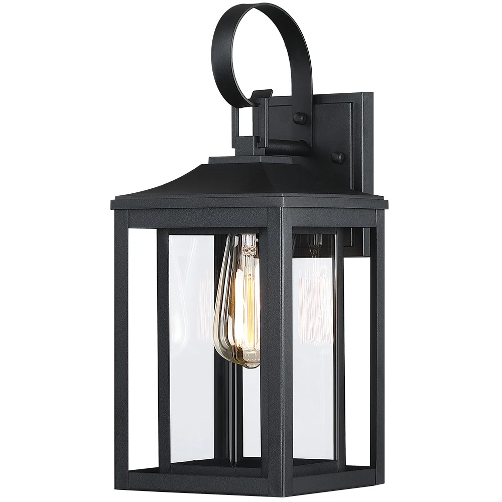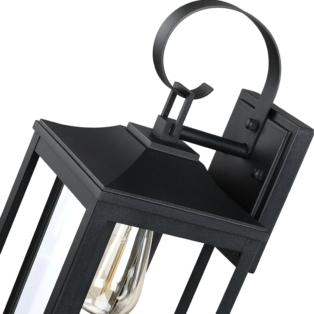 1-Light Black Outdoor Wall Sconce with Clear Glass Shade