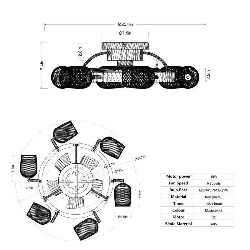 25.8'' Industrial Ceiling Fan with remote control
