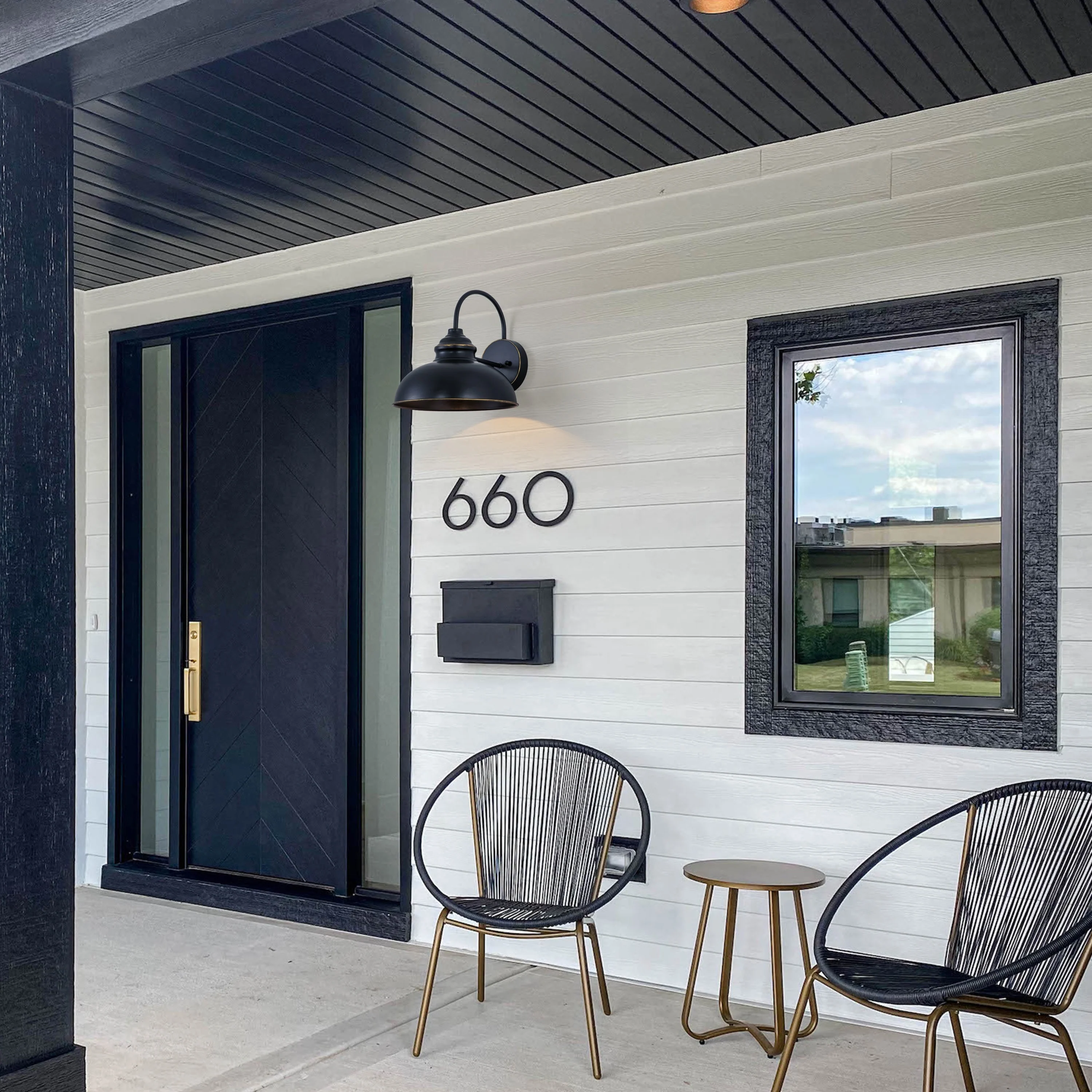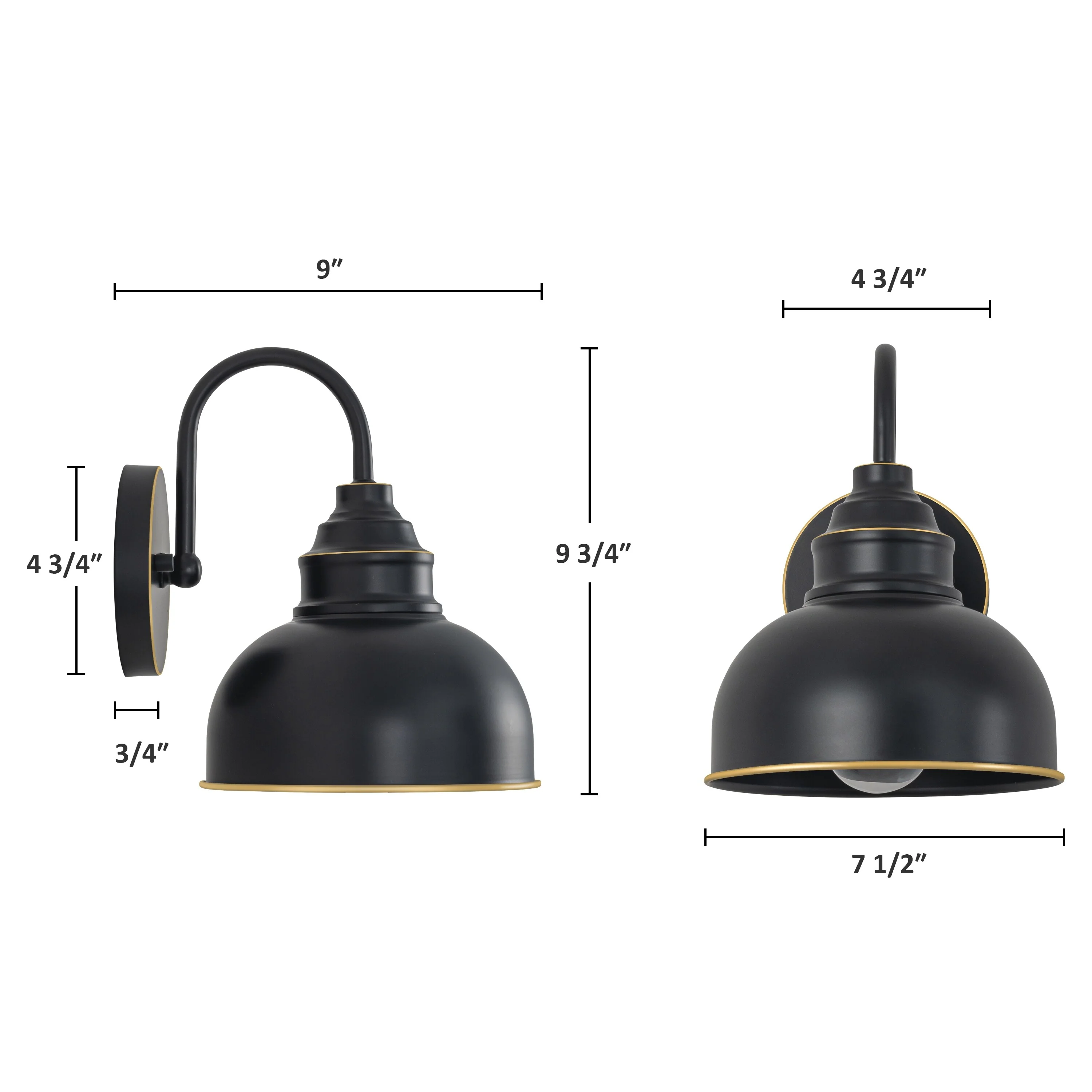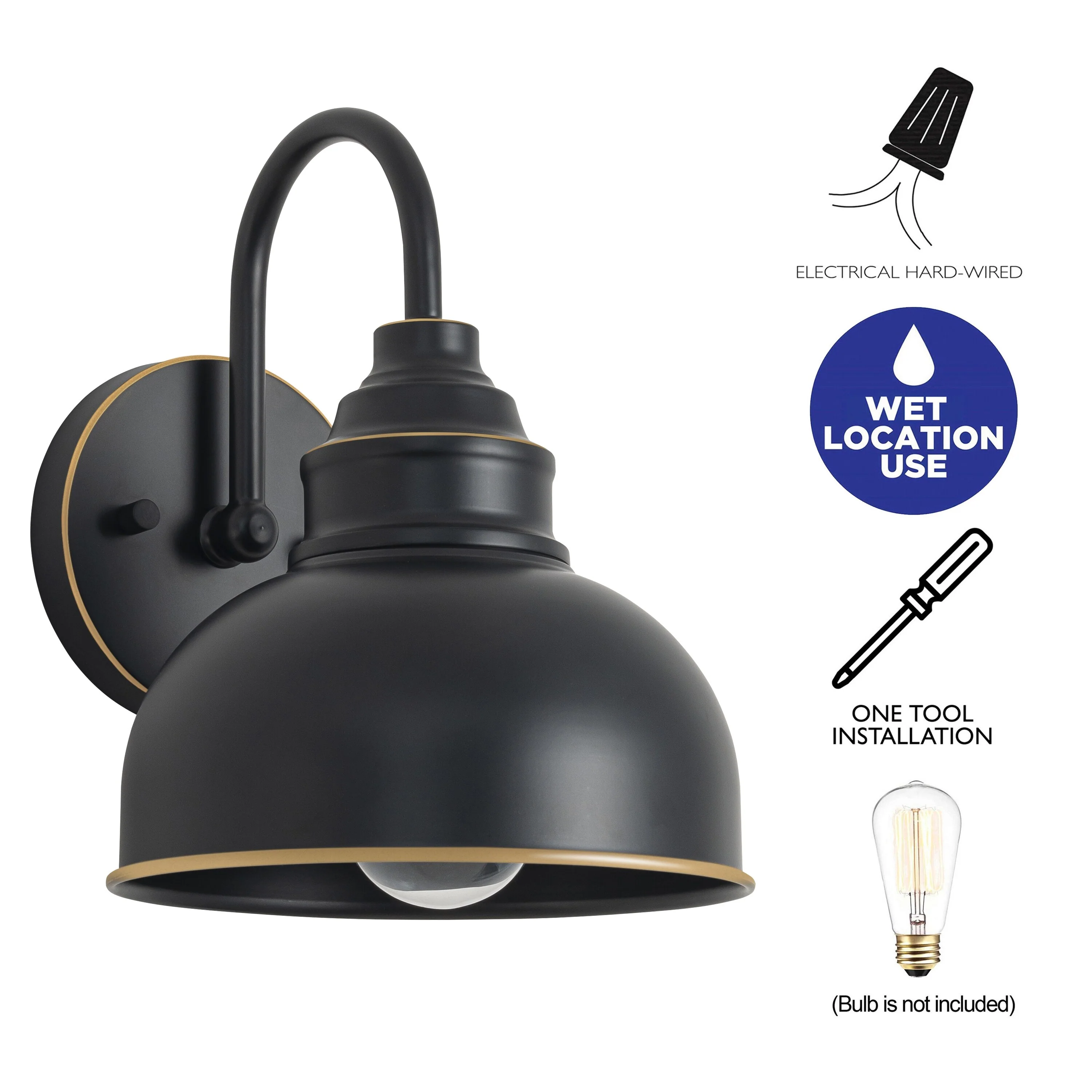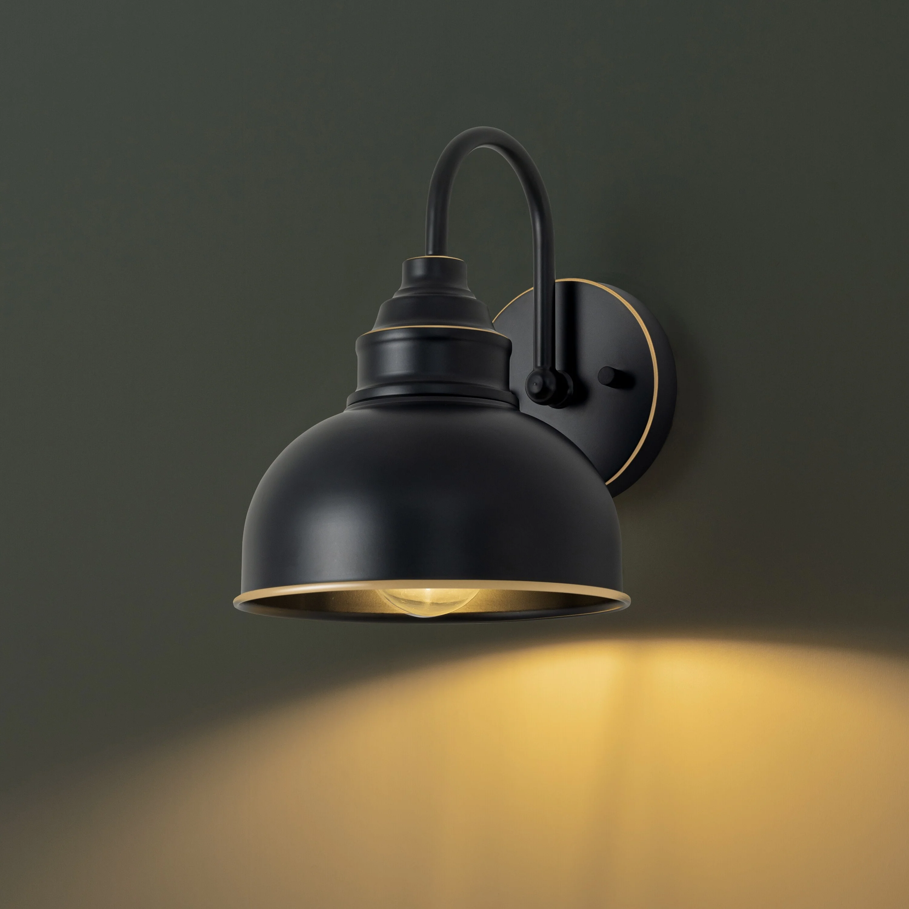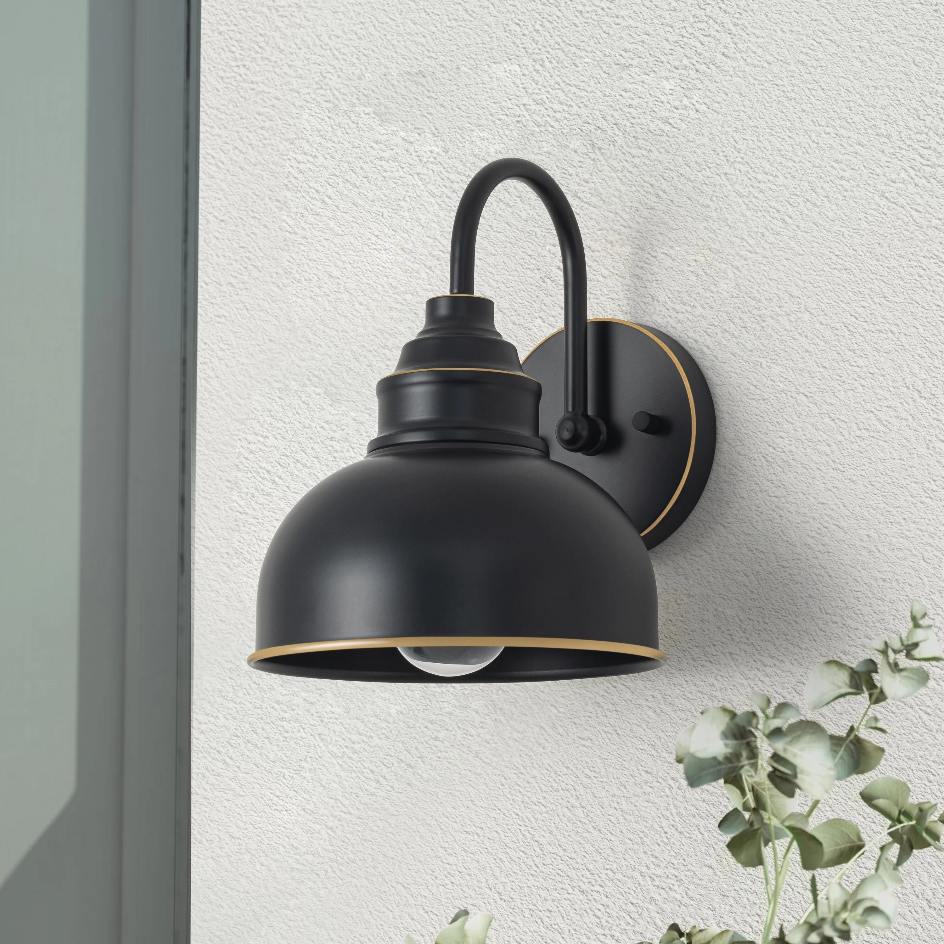 C Cattleya 1-Light Black Gooseneck Outdoor Barn Light with Gold Edges