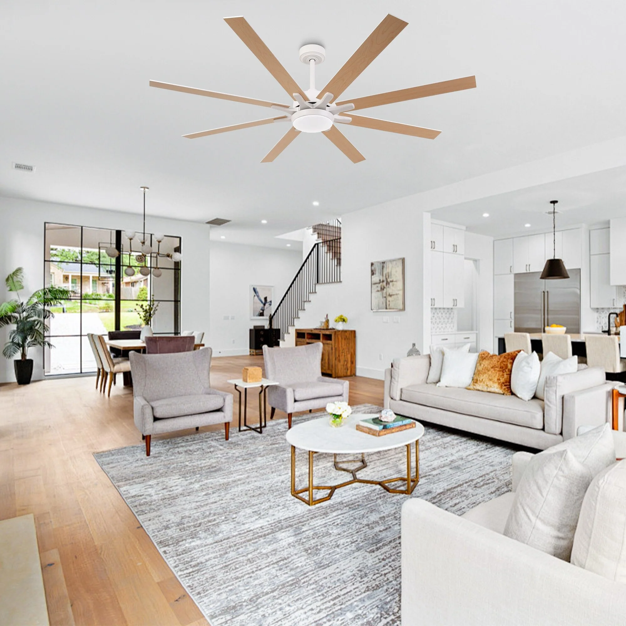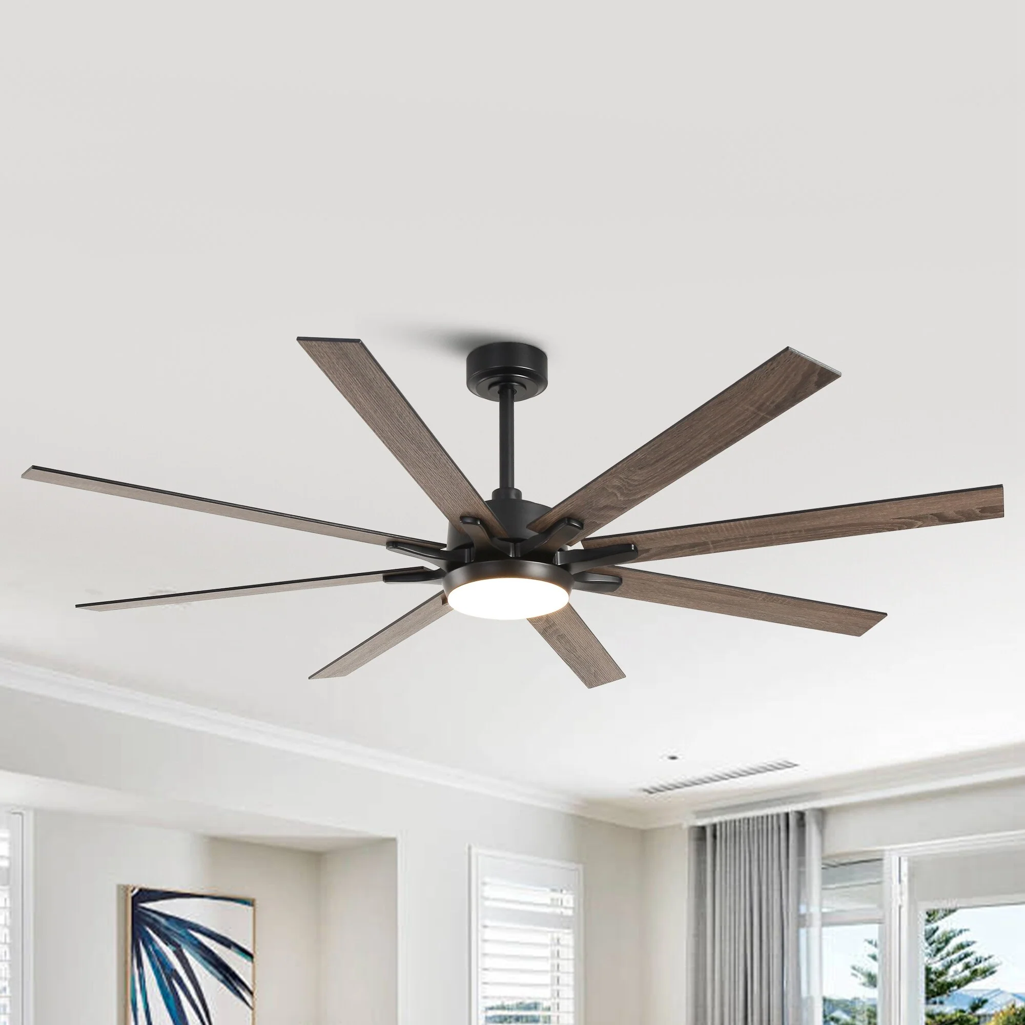 Timechee 65" Indoor 8-Blades Wood Ceiling Fan with Remote Control - 65 Inches