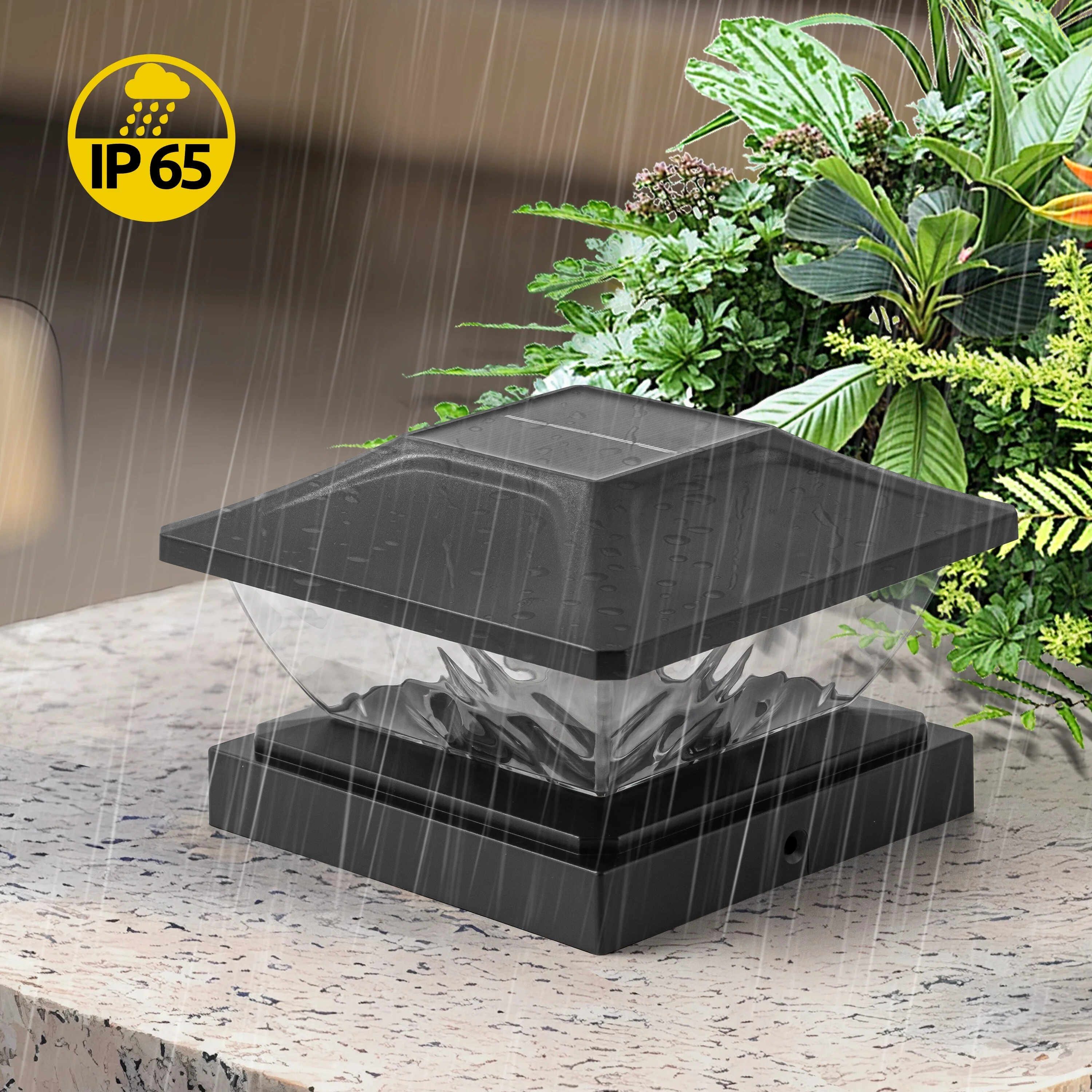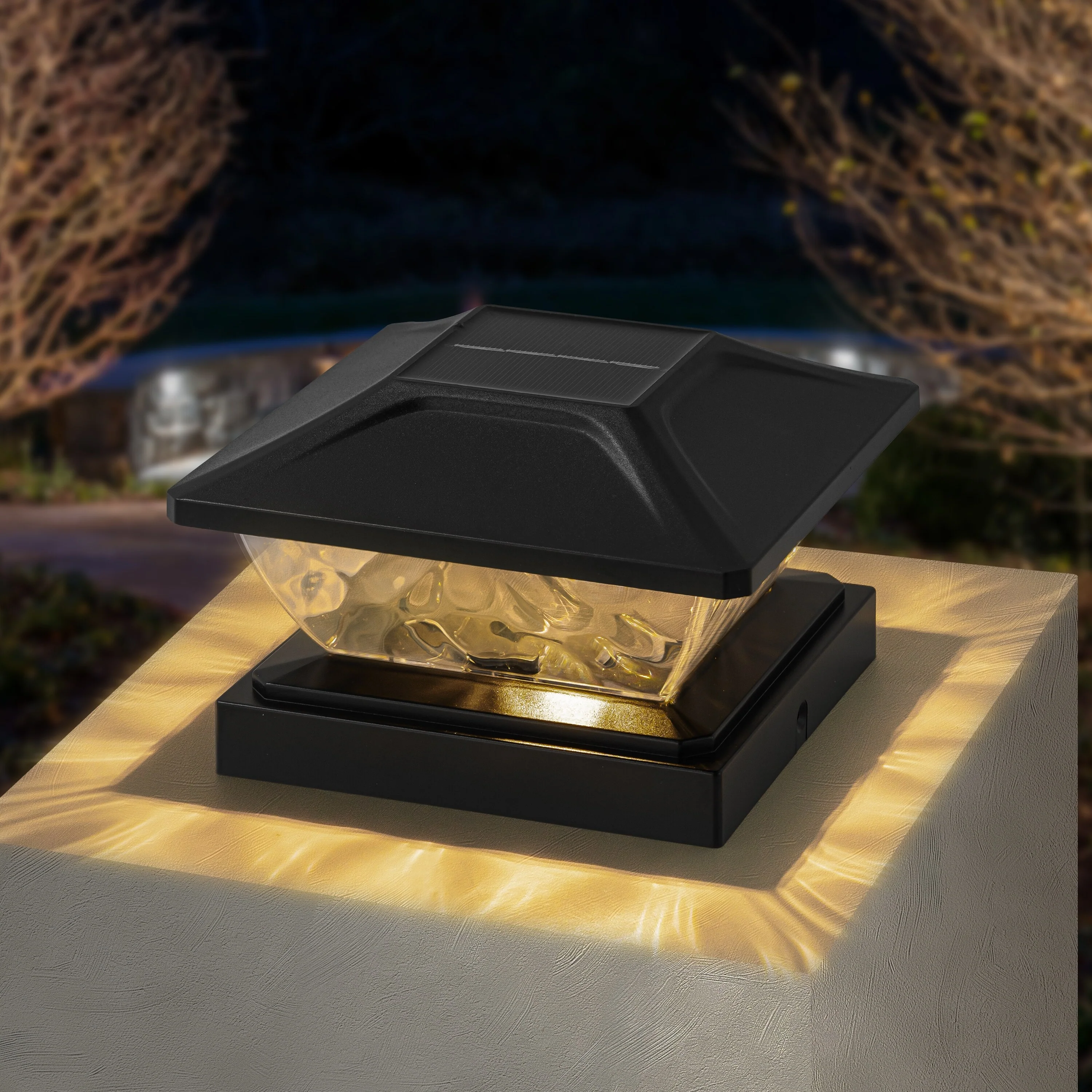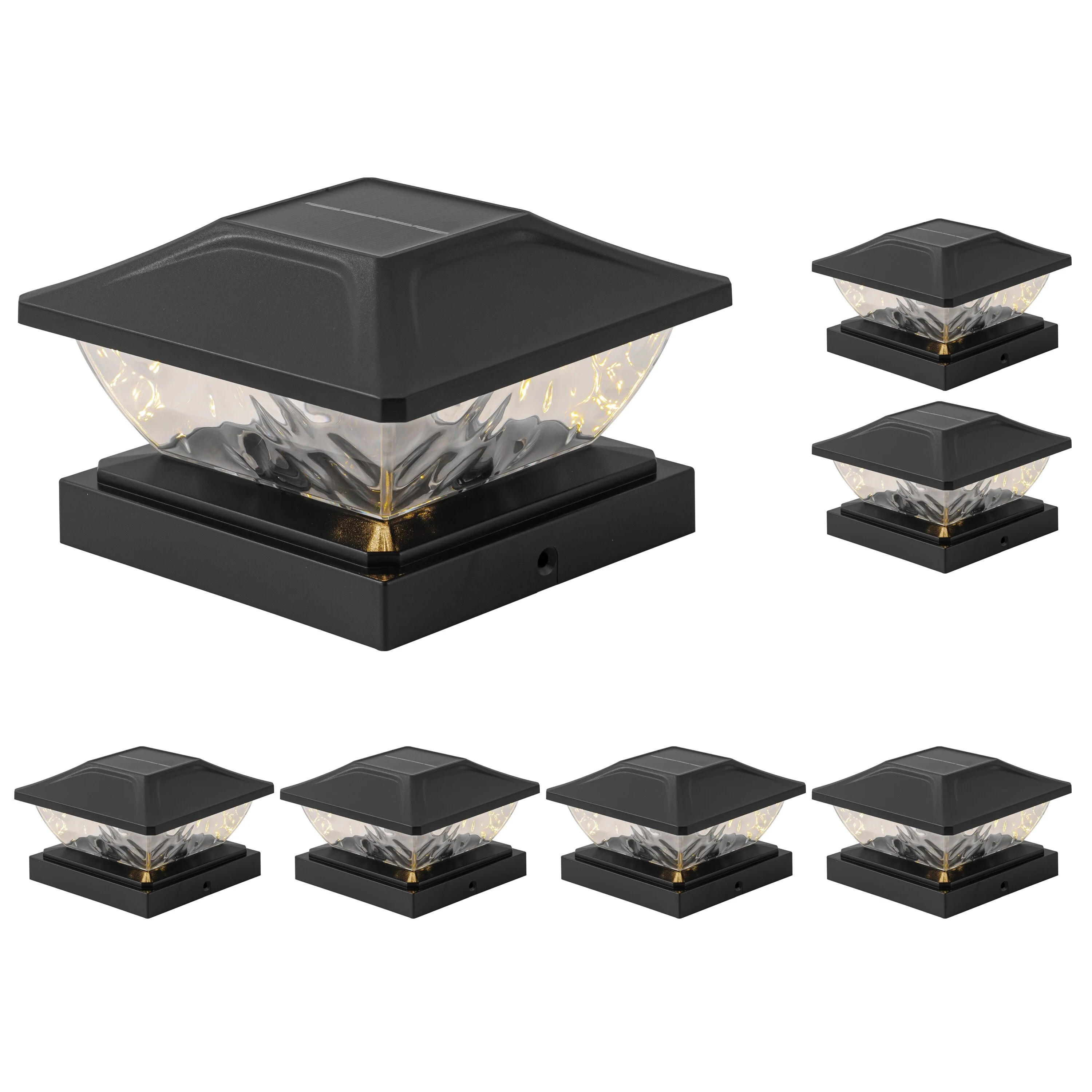 C Cattleya Black Solar LED Outdoor Post Cap Lights with Hammered Lens