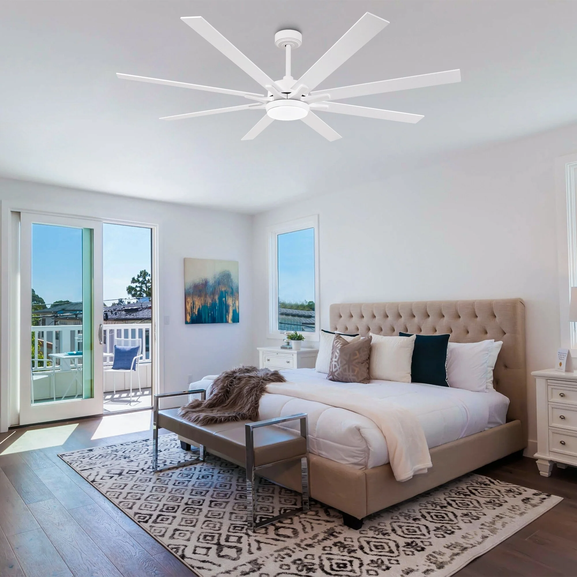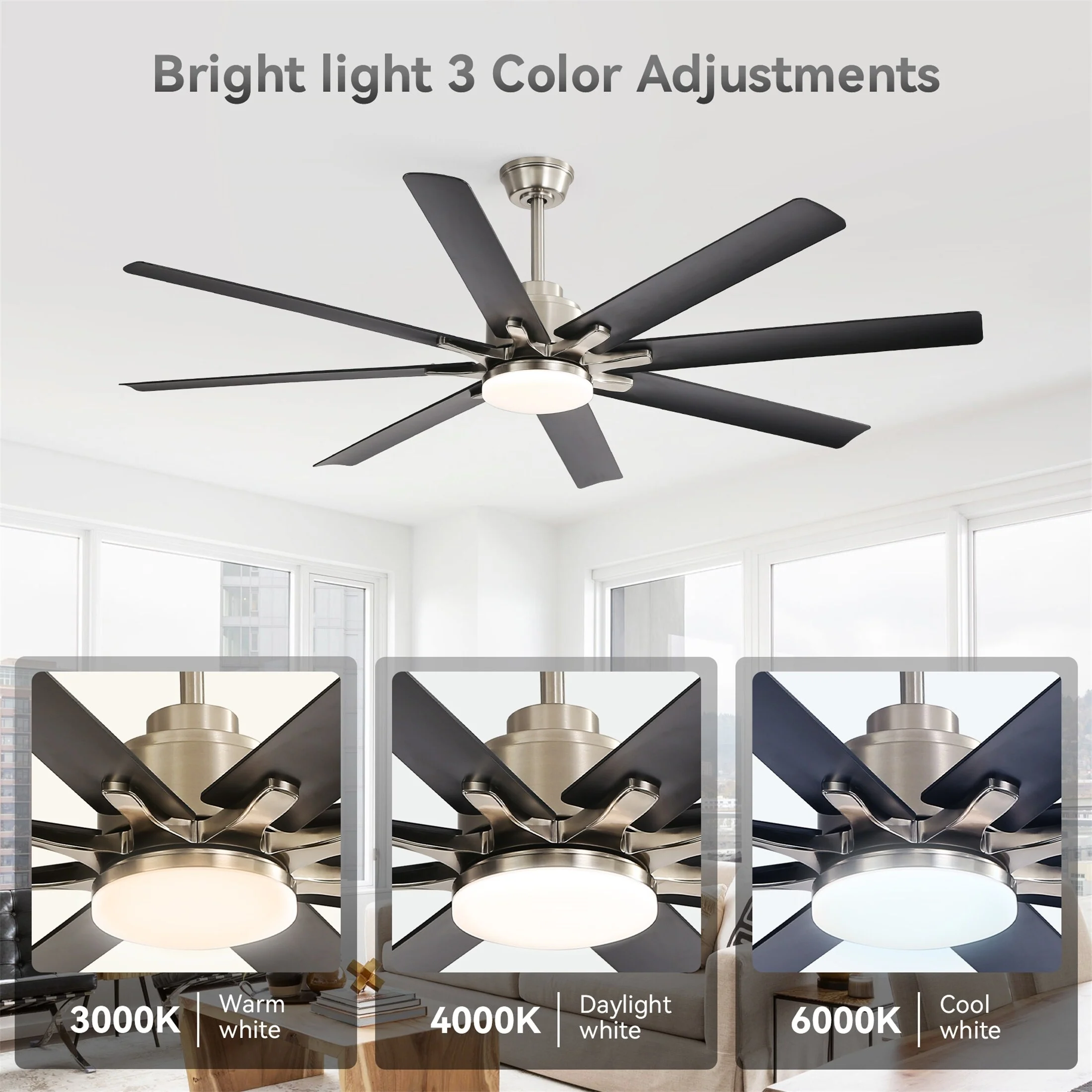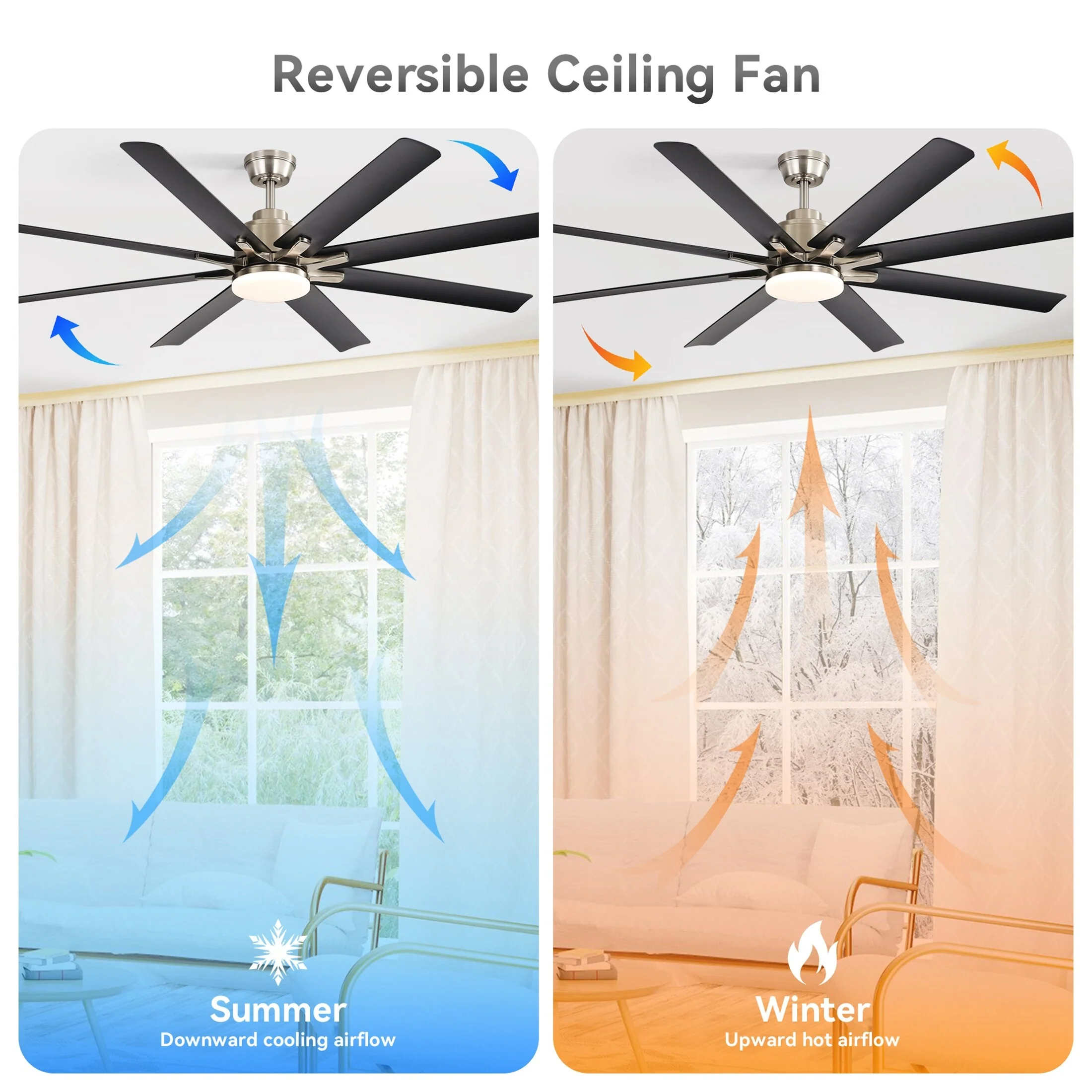 84 Inch Large Smart Ceiling Fan with Light, 8 Black Aluminum Blades, Indoor Outdoor Reversible Ceiling Fan for Living Room Patio