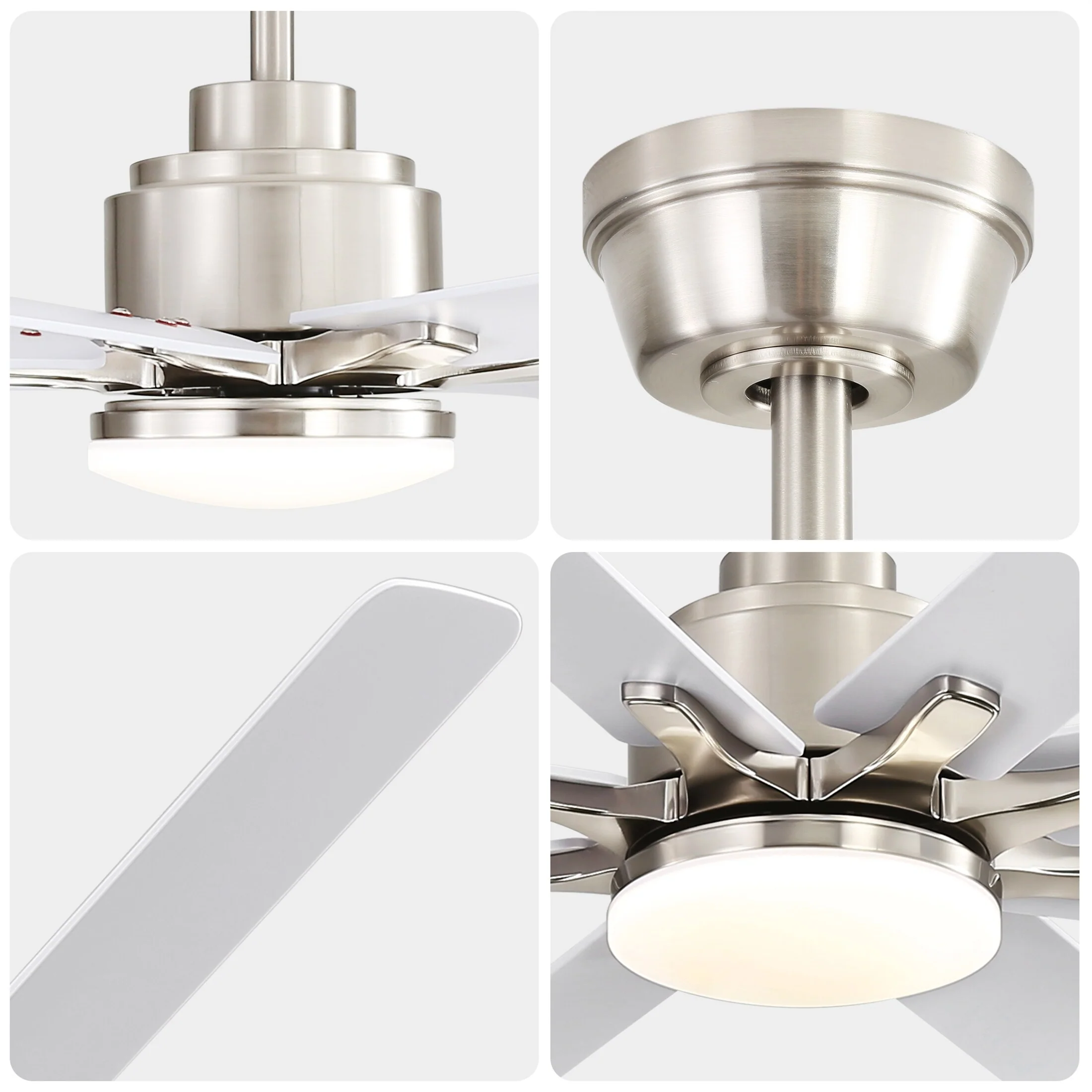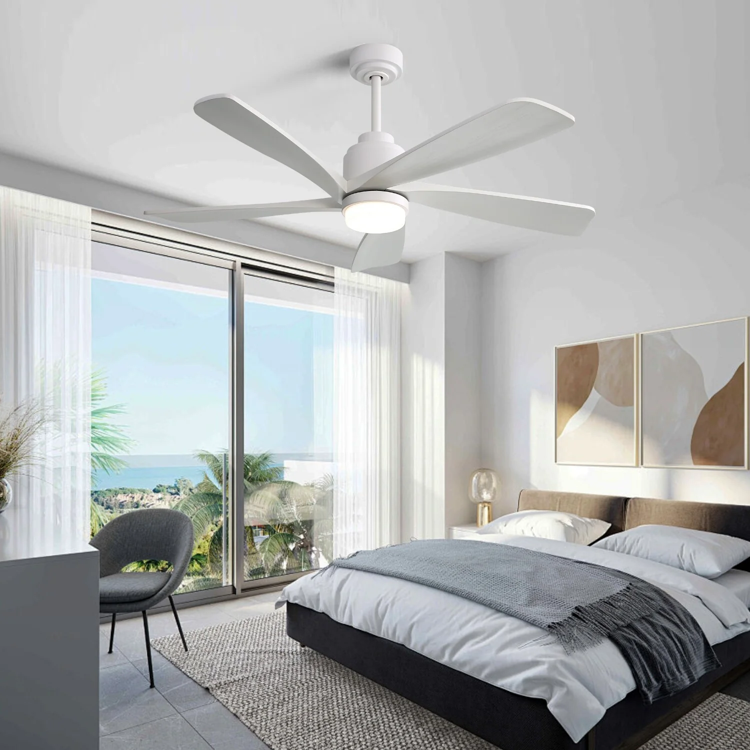 52 Inch Modern Led Ceiling Fan With 3 Color Dimmable 5 ABS Blades Remote Control Reversible DC Motor White For Bedroom