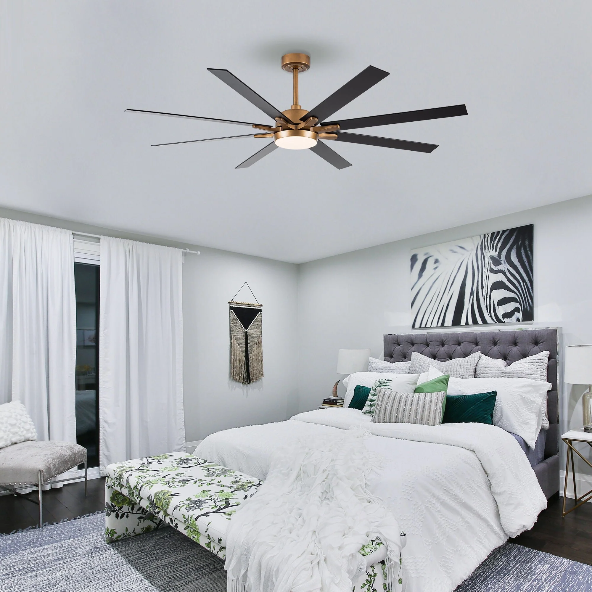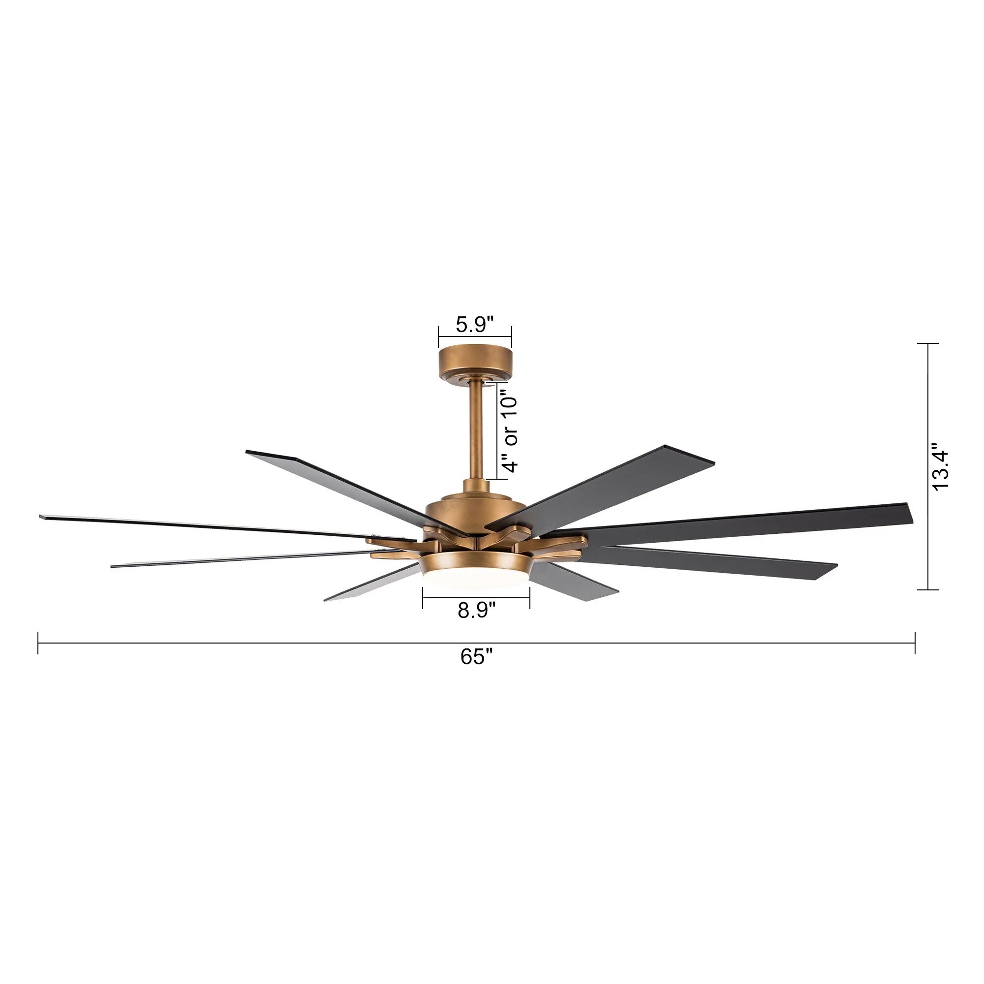 65-Inch Antique Brass/ Black/ White Reversible Large Ceiling Fan with Light and Remote