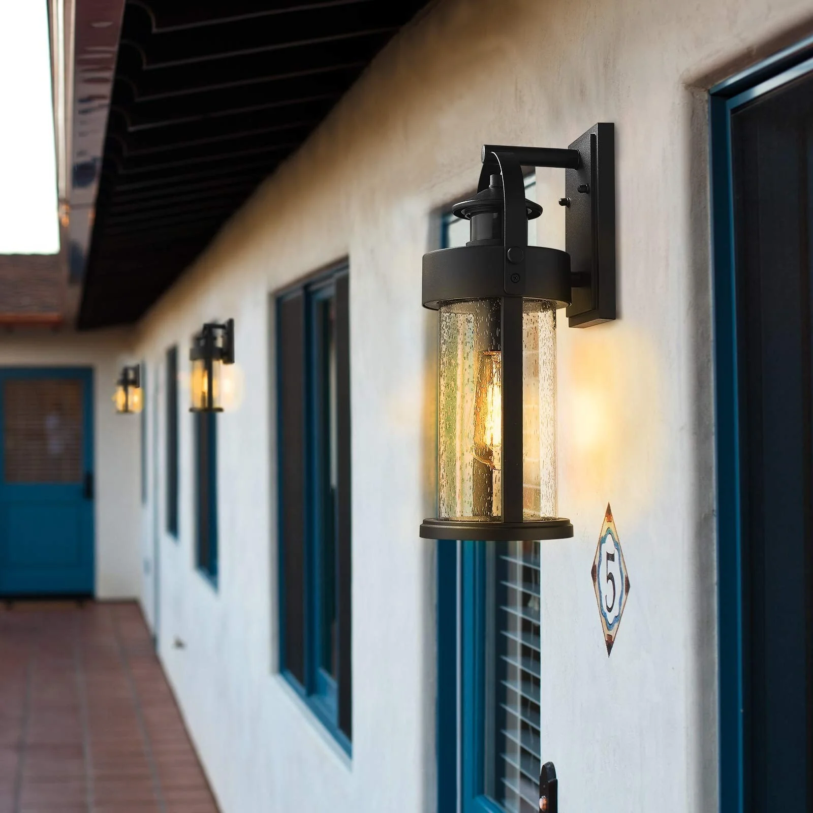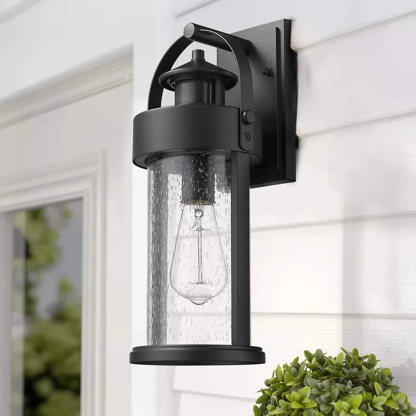 Motion Sensor Outdoor Wall Light with Seeded Glass