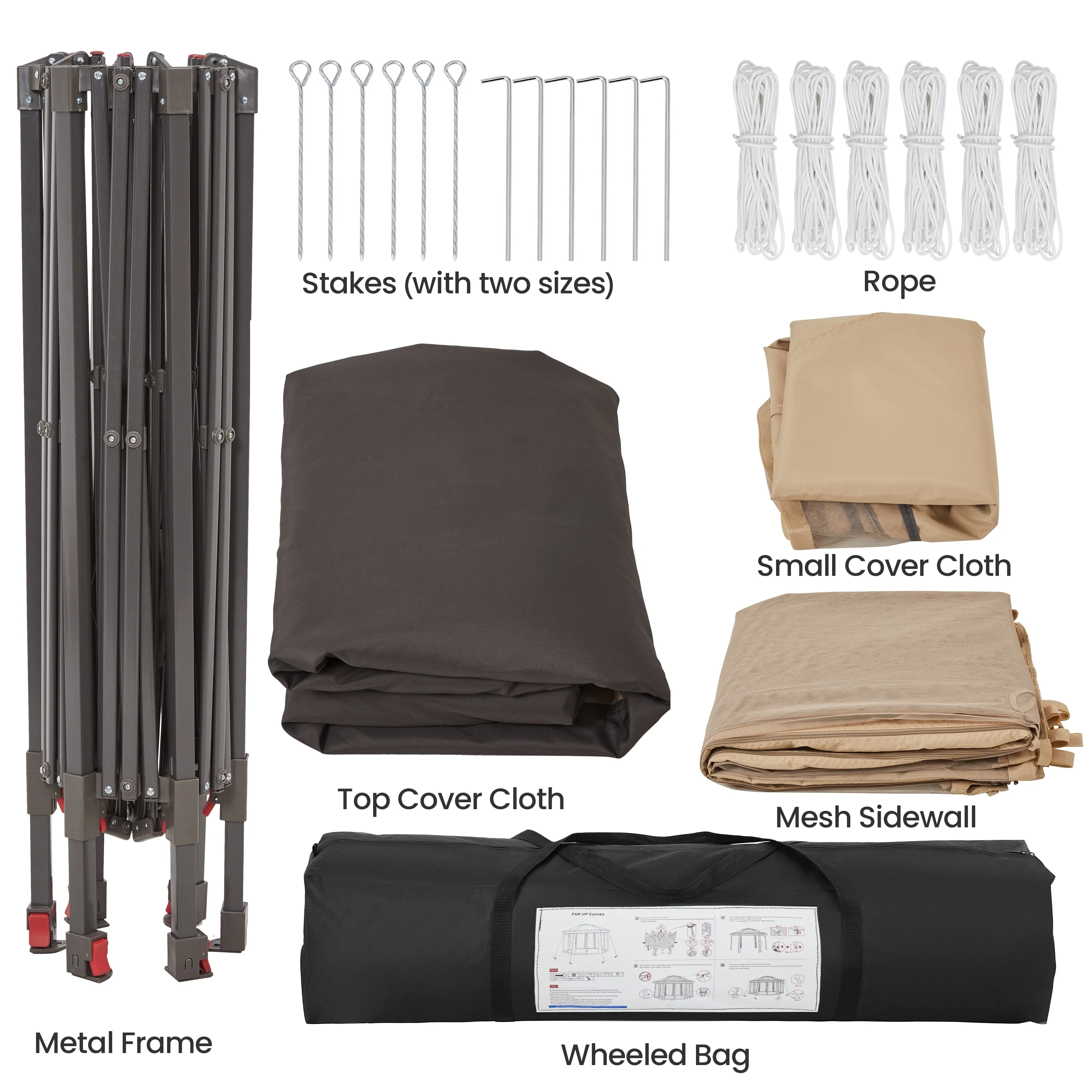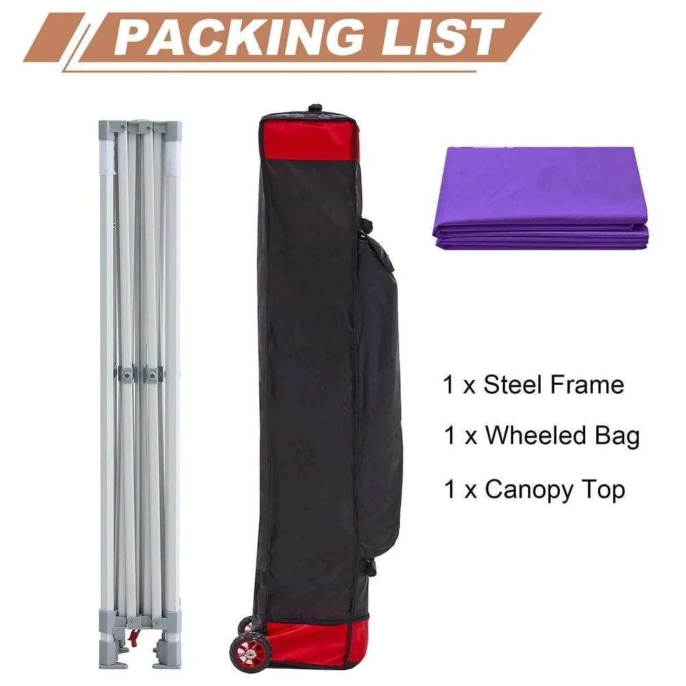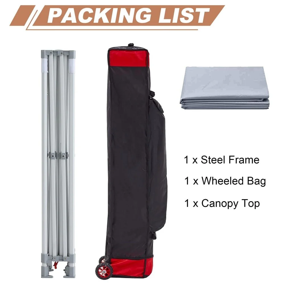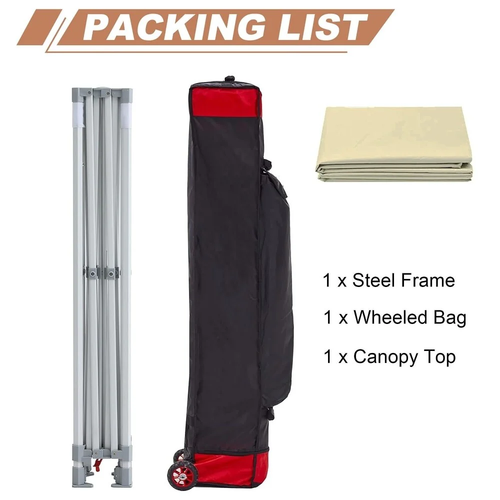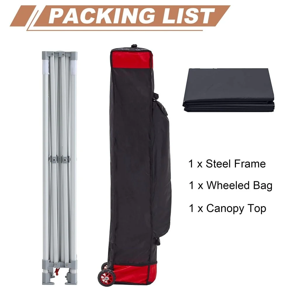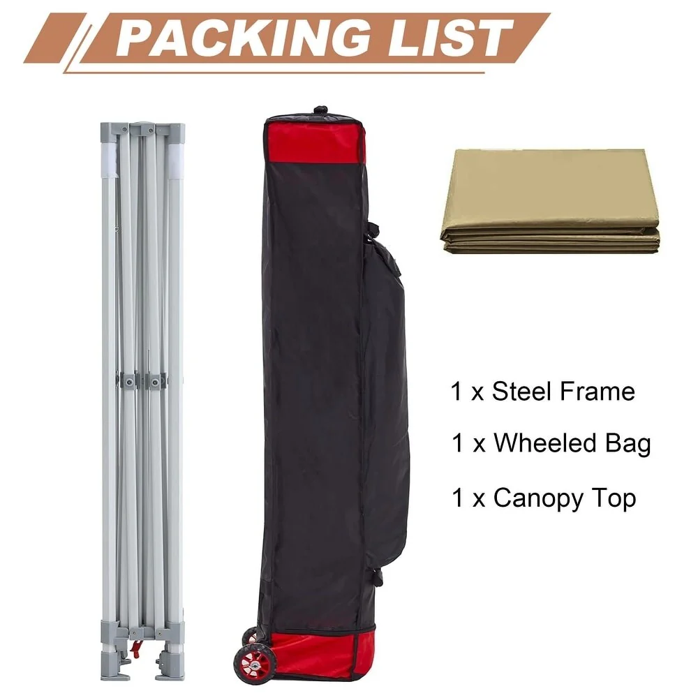 10x10 Ft. PU Canopy Tent with Steel Frame and Wheeled Bag - 120" L x 120" W