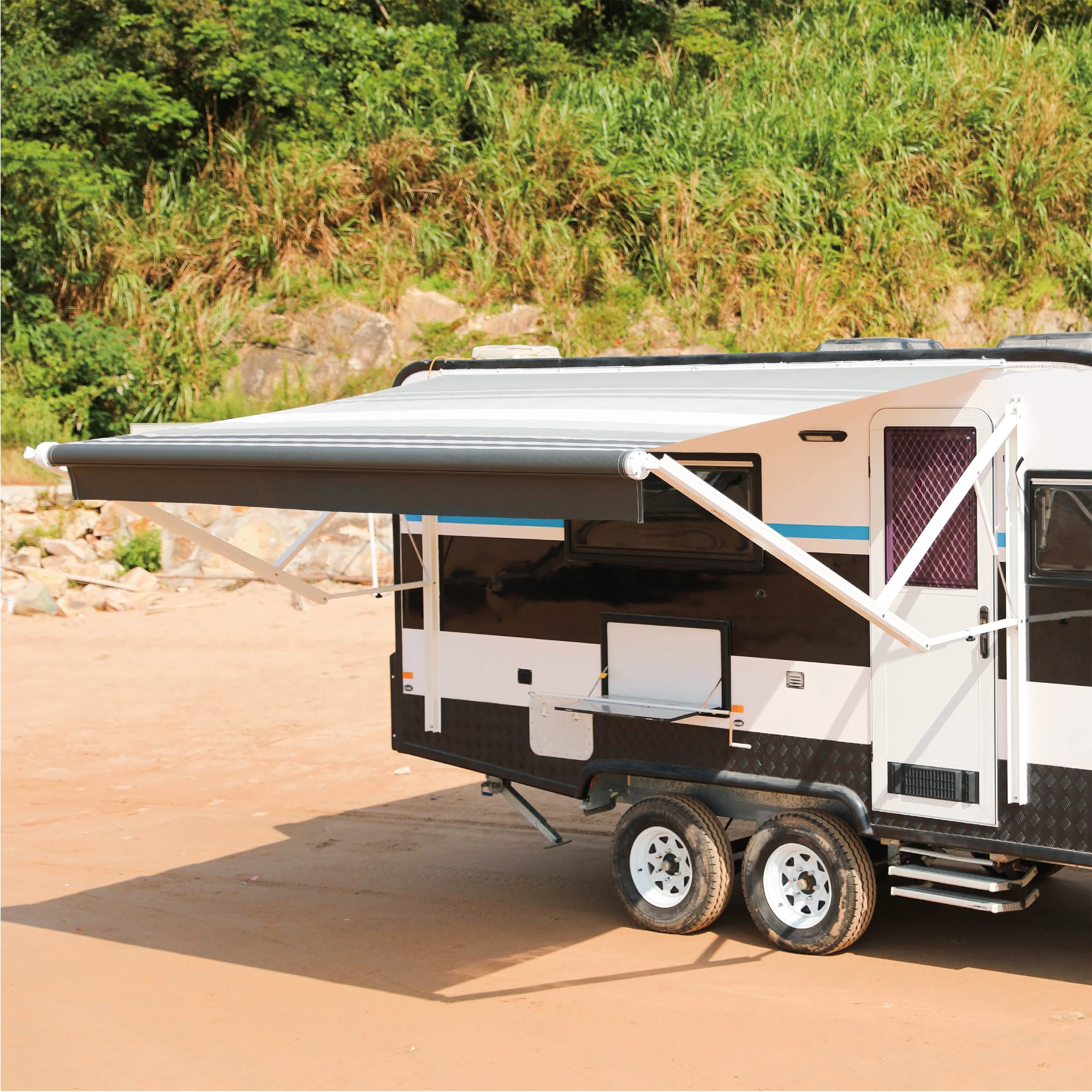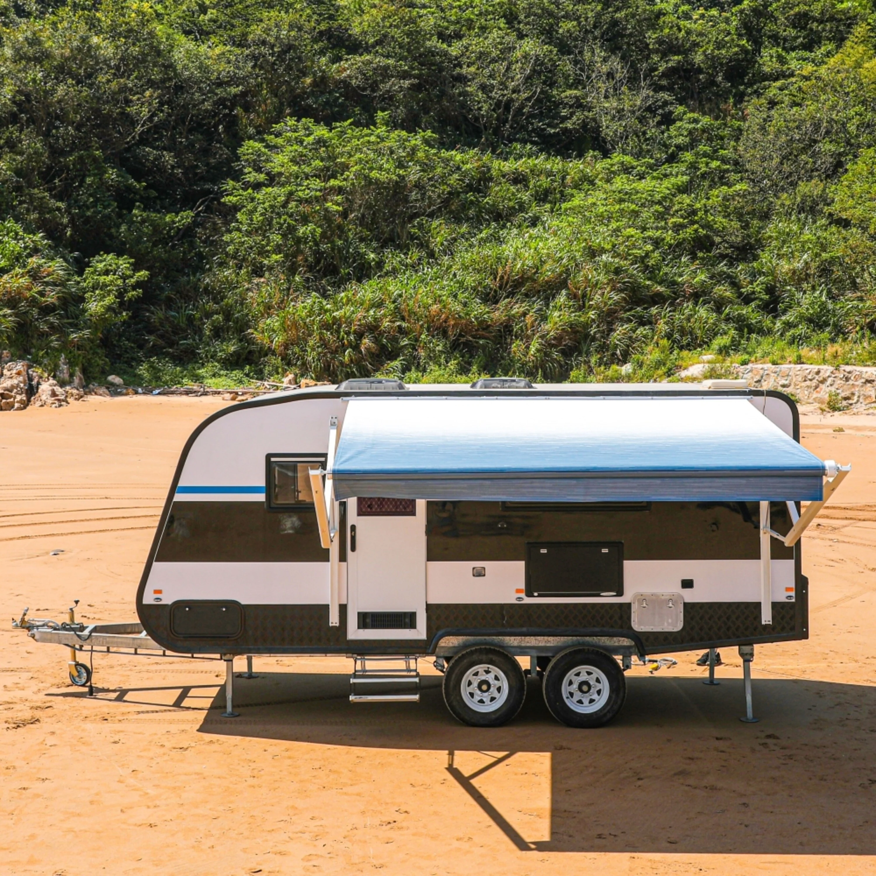 ALEKO Vinyl RV 8X8 ft Awning Replacement Fabric Blue Stripes