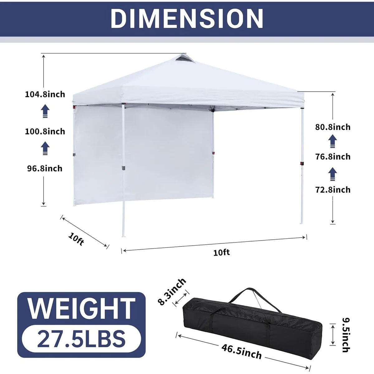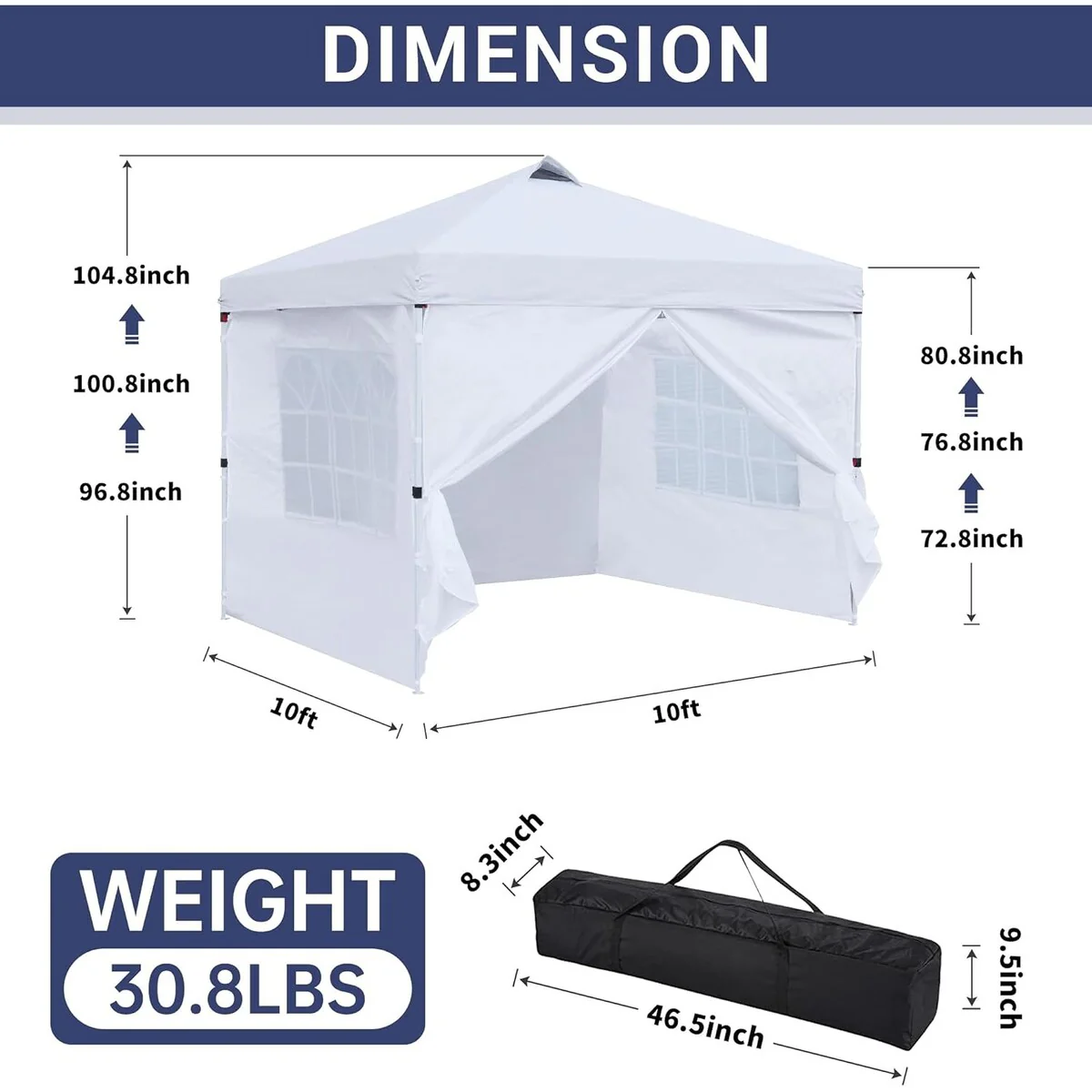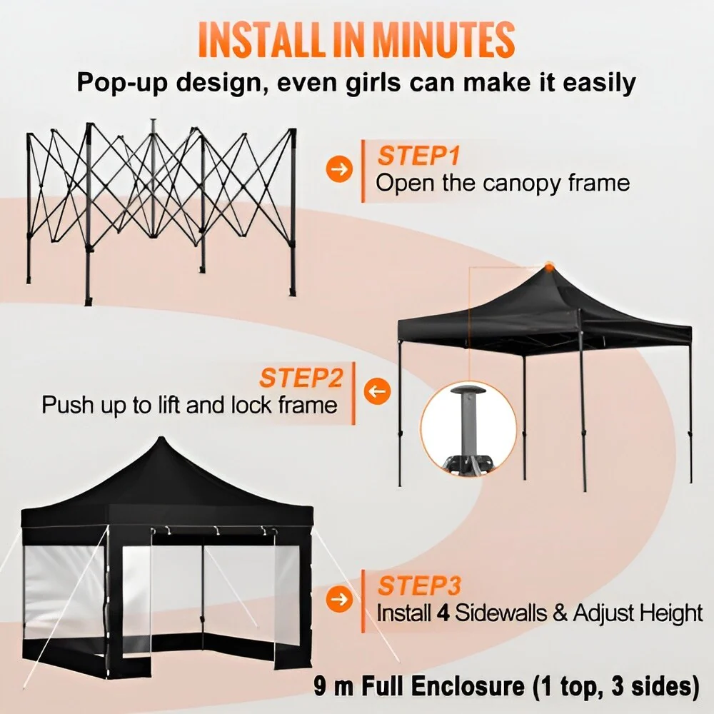 500D PU Coated Pop-Up Canopy Tent with Sidewalls and Carry Bag - 120�� L x 120�� W x 126�� H