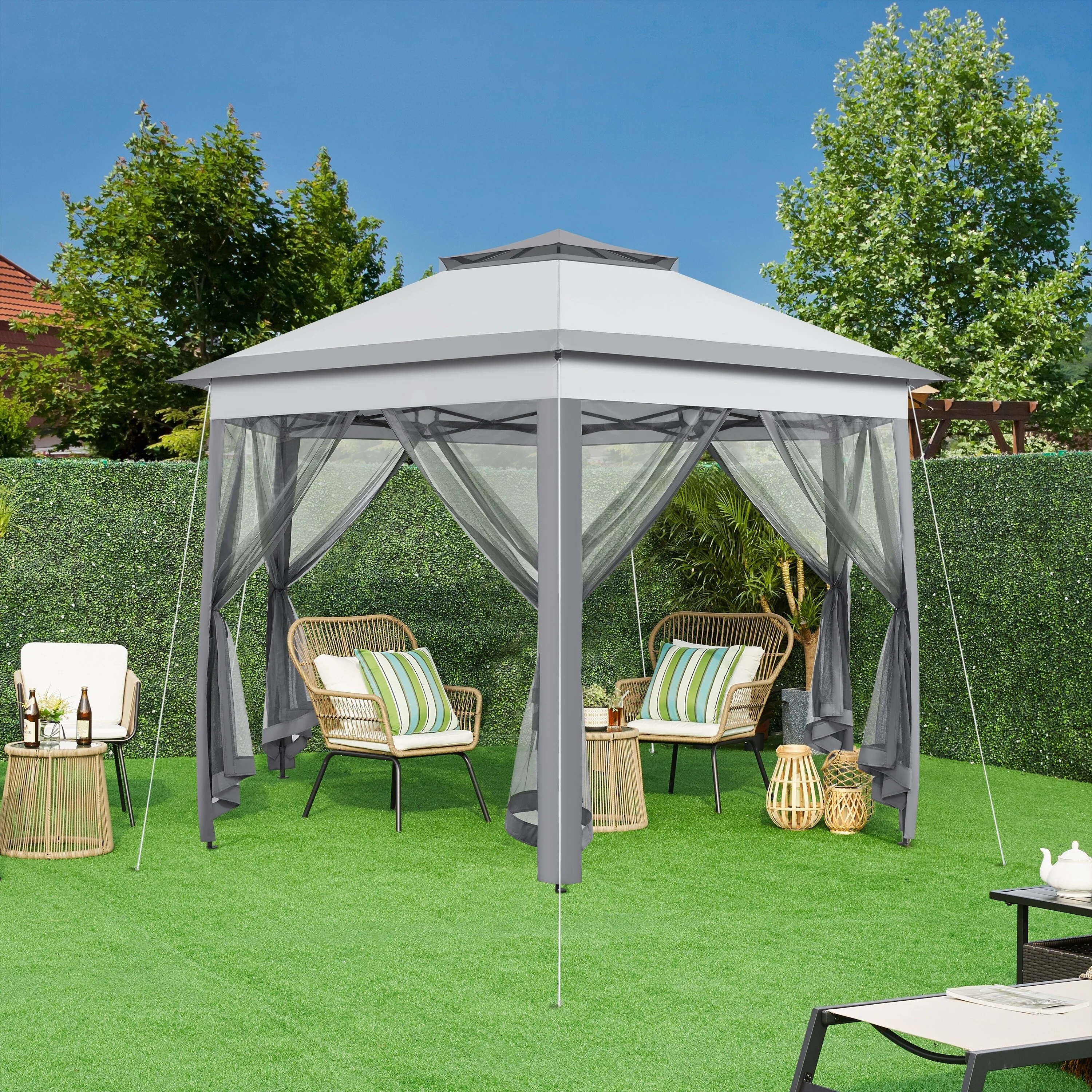 Yaheetech Outdoor Gazebo Pop Up Canopy with Metal Frame Mesh Netting
