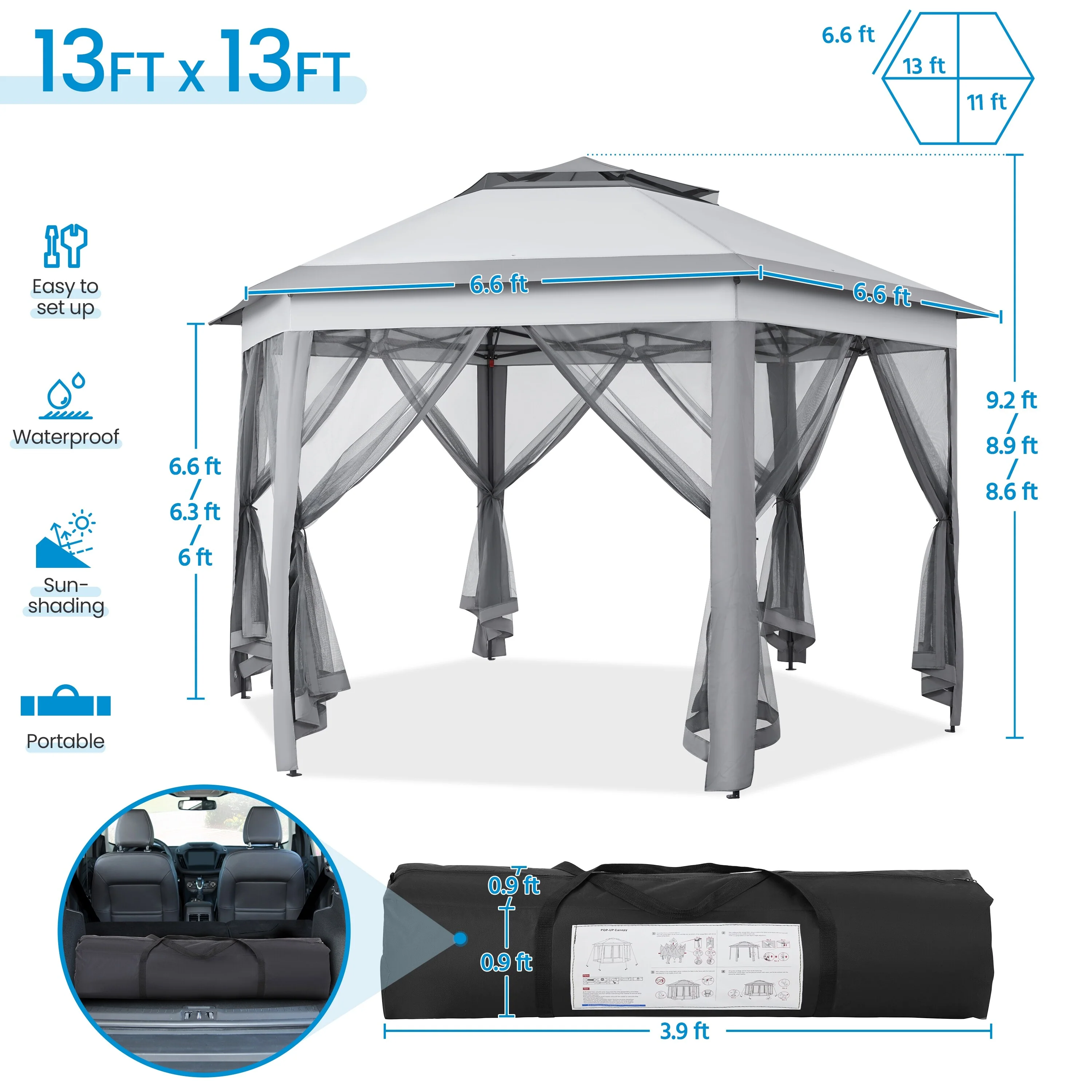 PVC Outdoor Patio Gazebo Tent with Sidewalls and Roller Bag