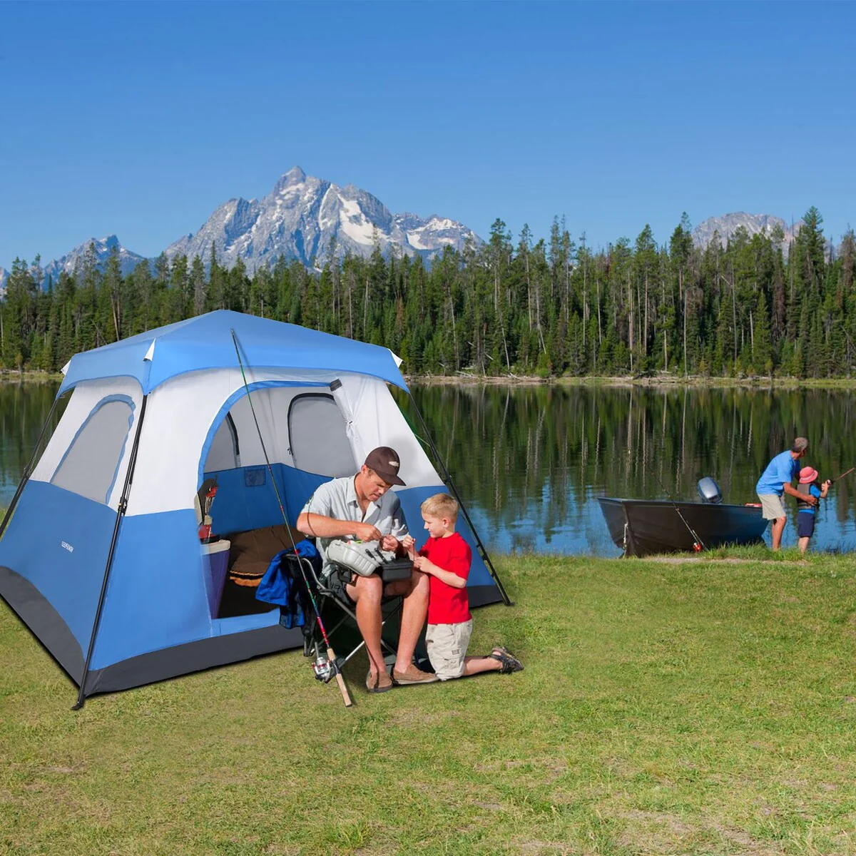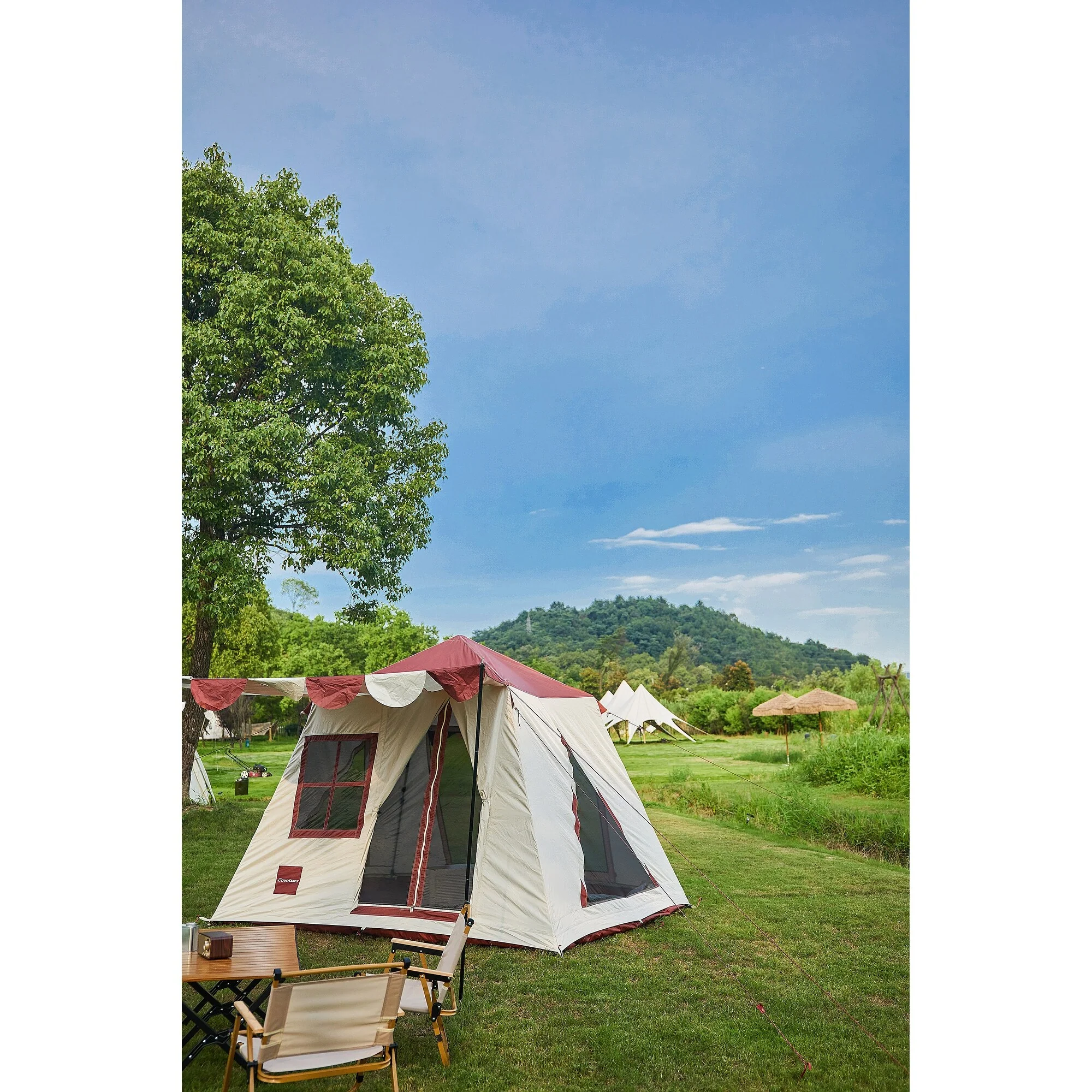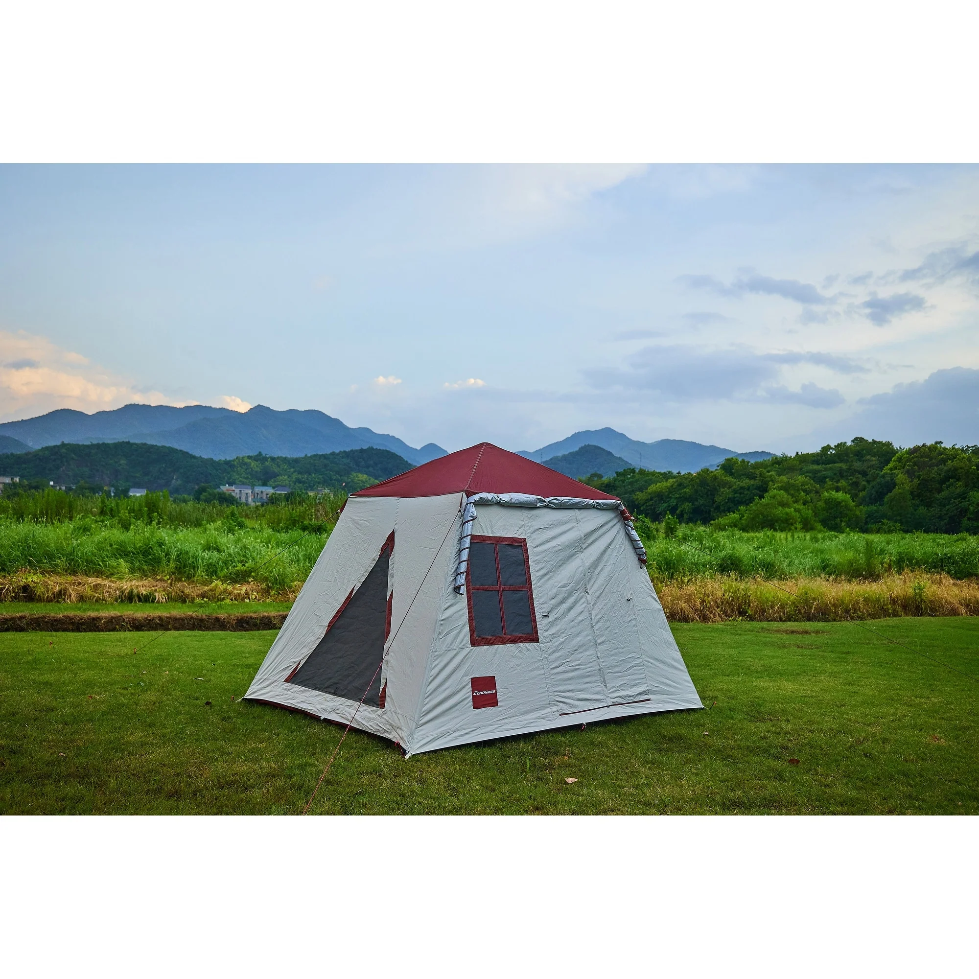 EchoSmile 5-Person Red and White Pop Up Camping Tent