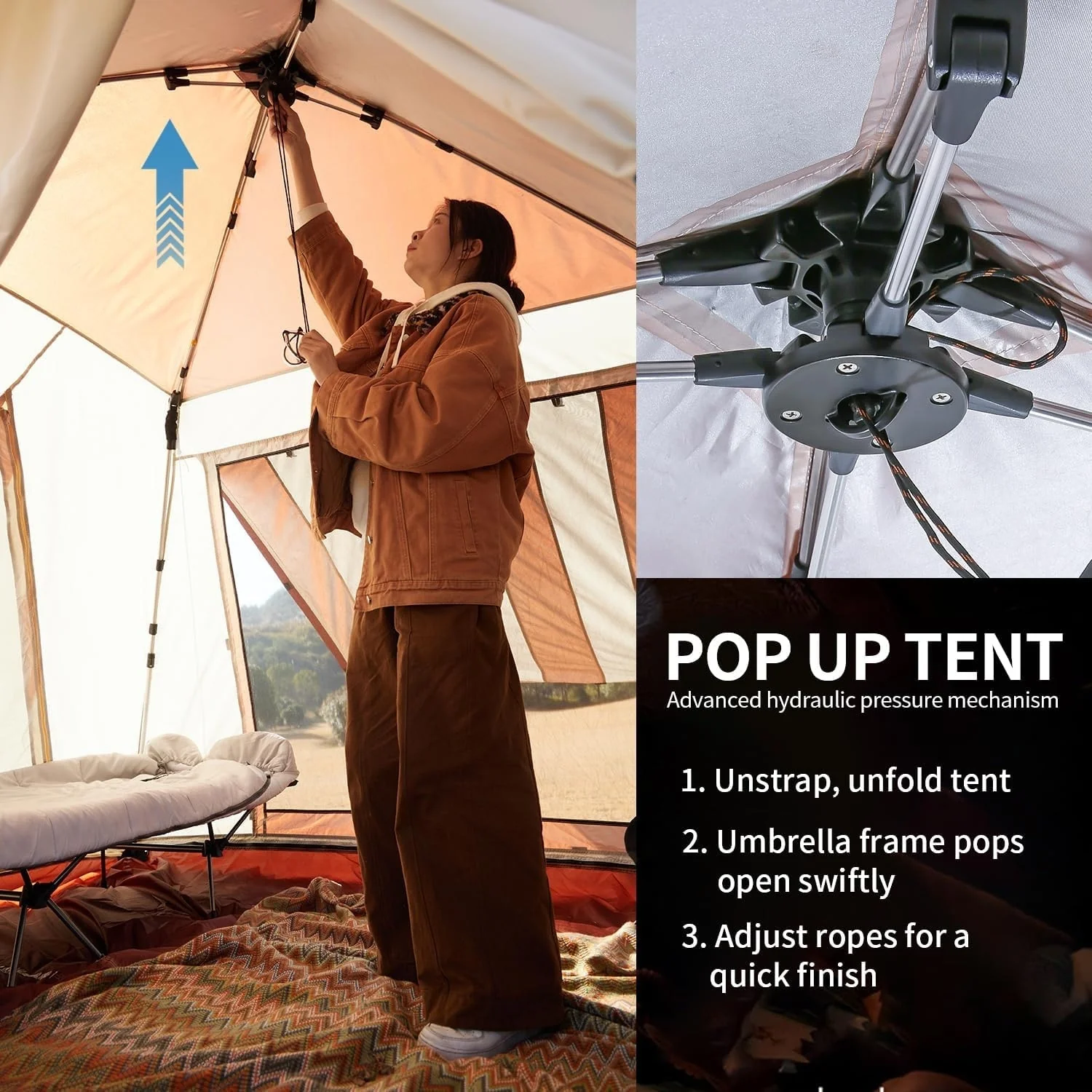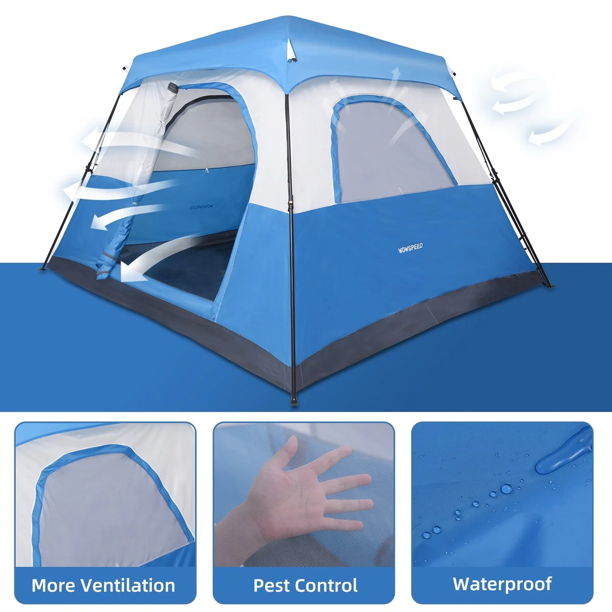 Large Easy Setup Instant Pop Up Beach 3-4 Person Tent With Rack