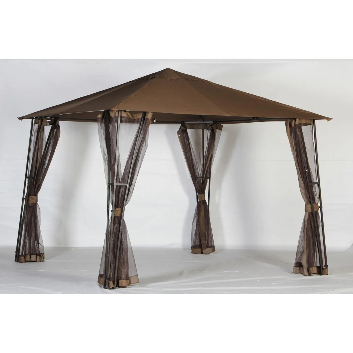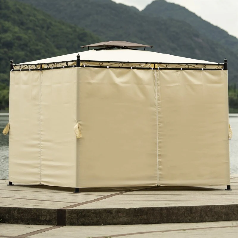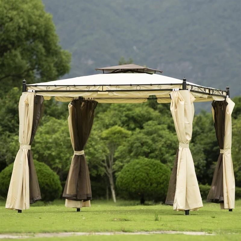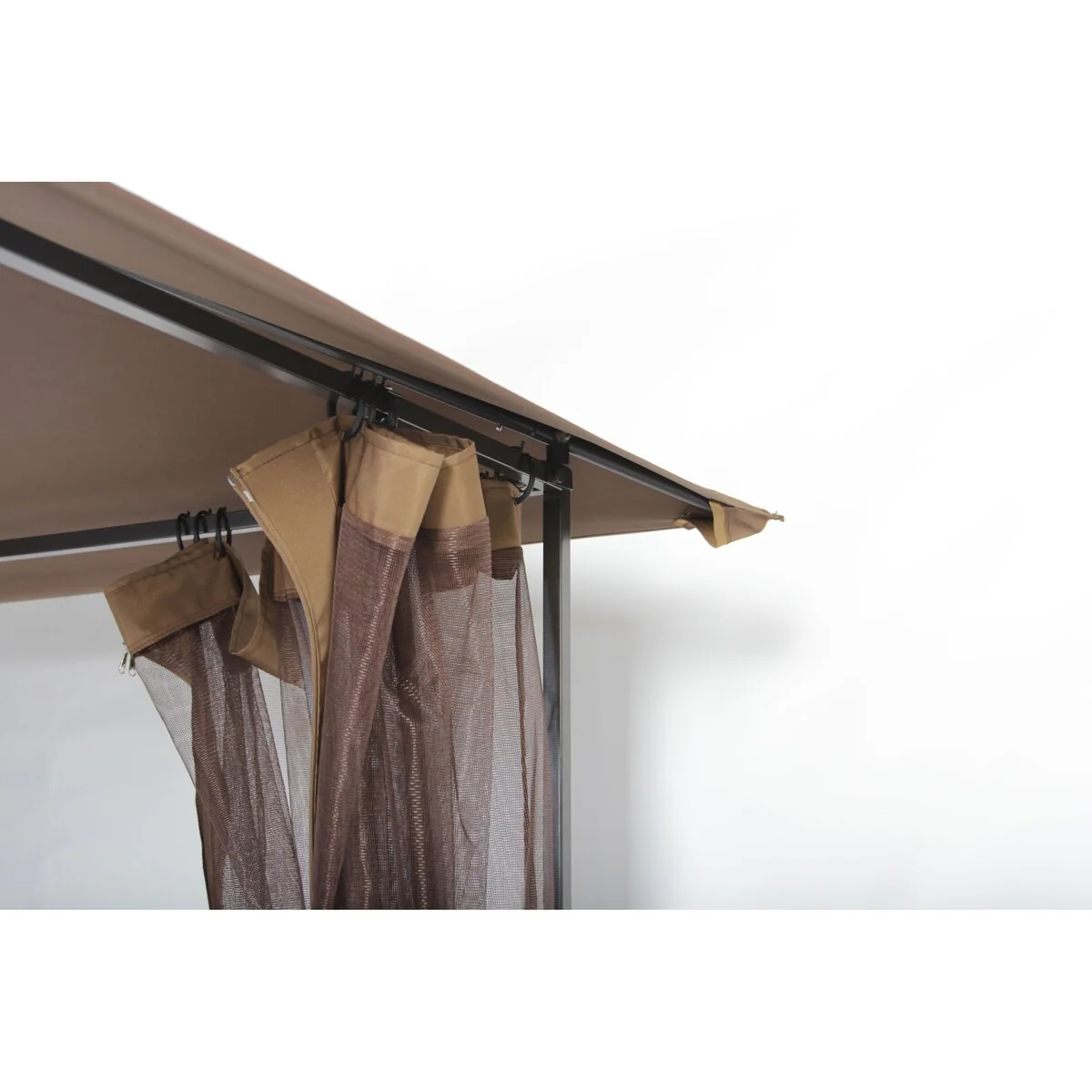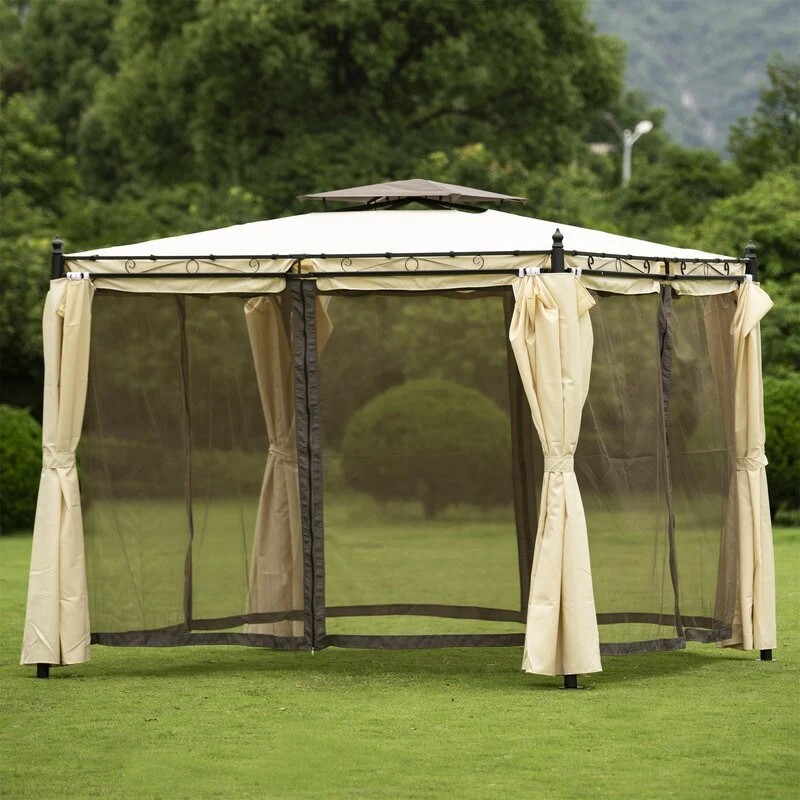 9.3ft.Wx8.5ft Patio Gazebo with Mosquito nets&Polyester Curtains,Beige - Beige