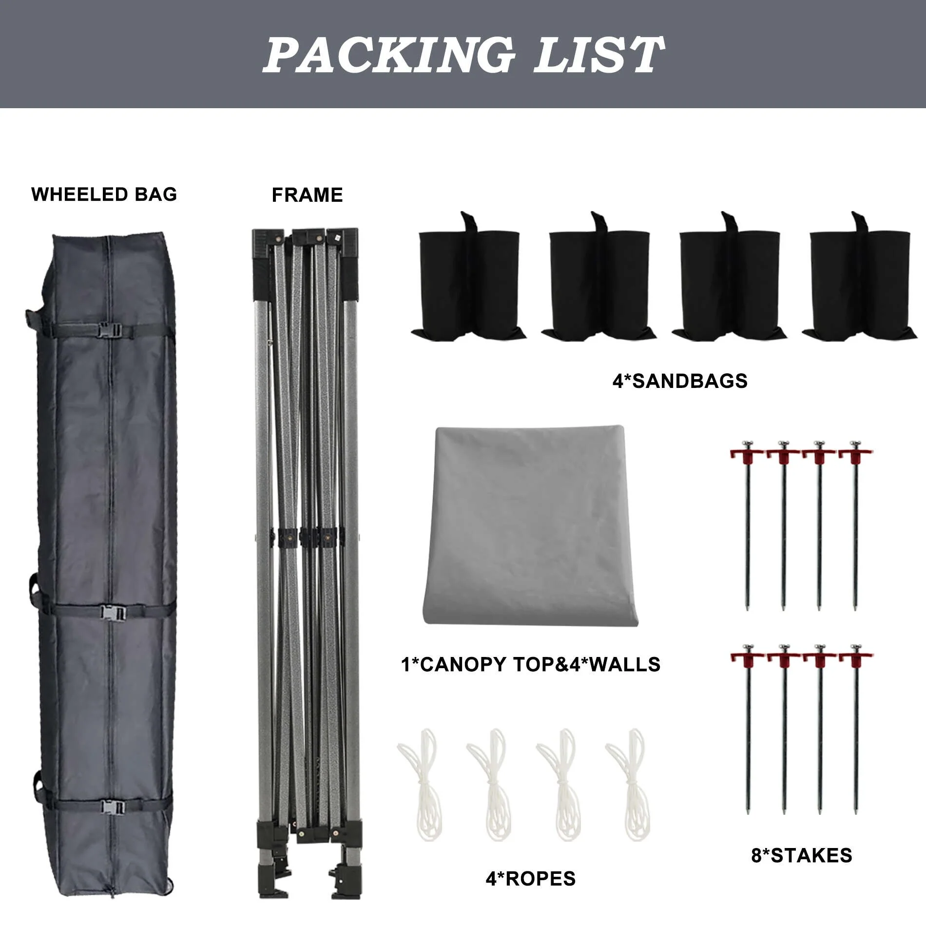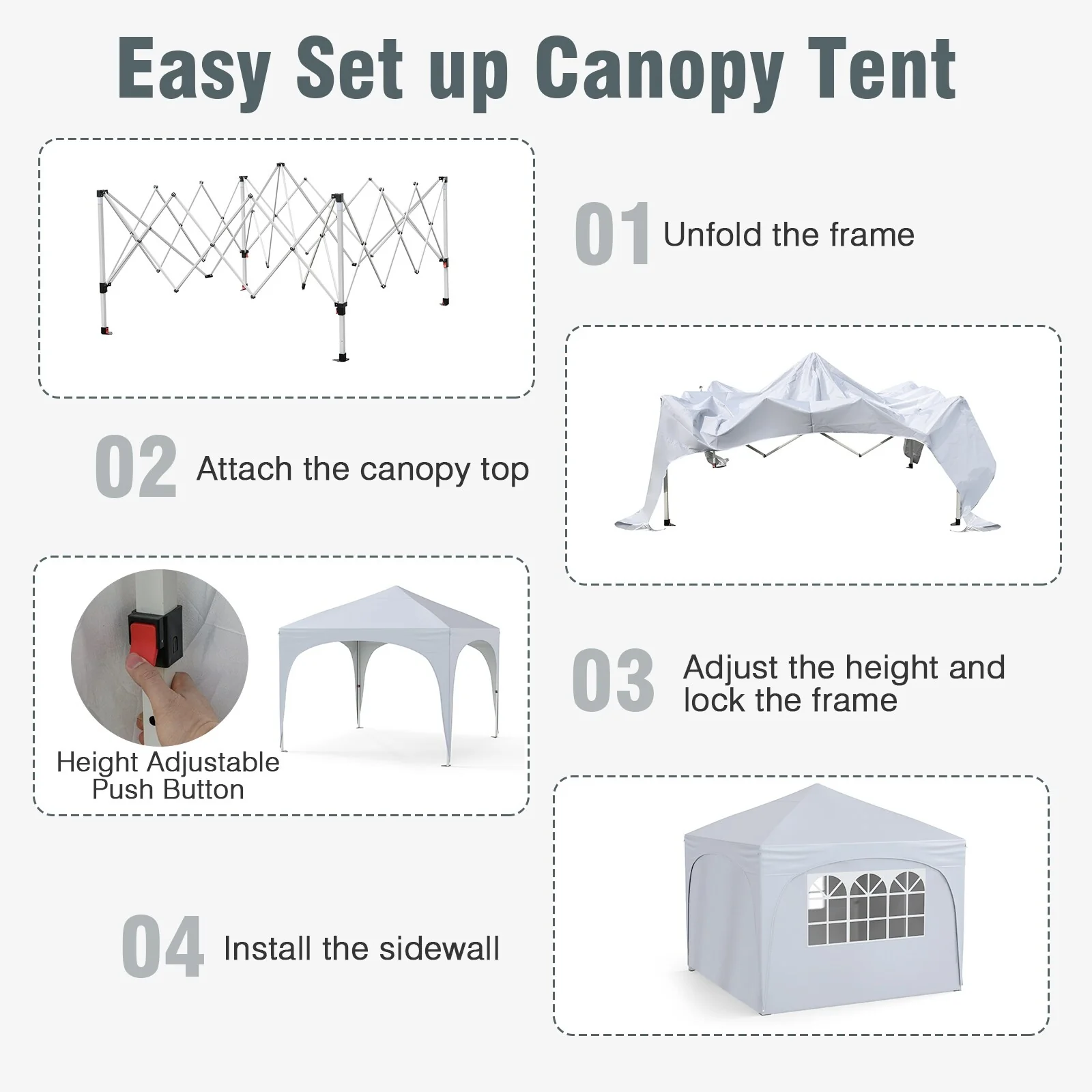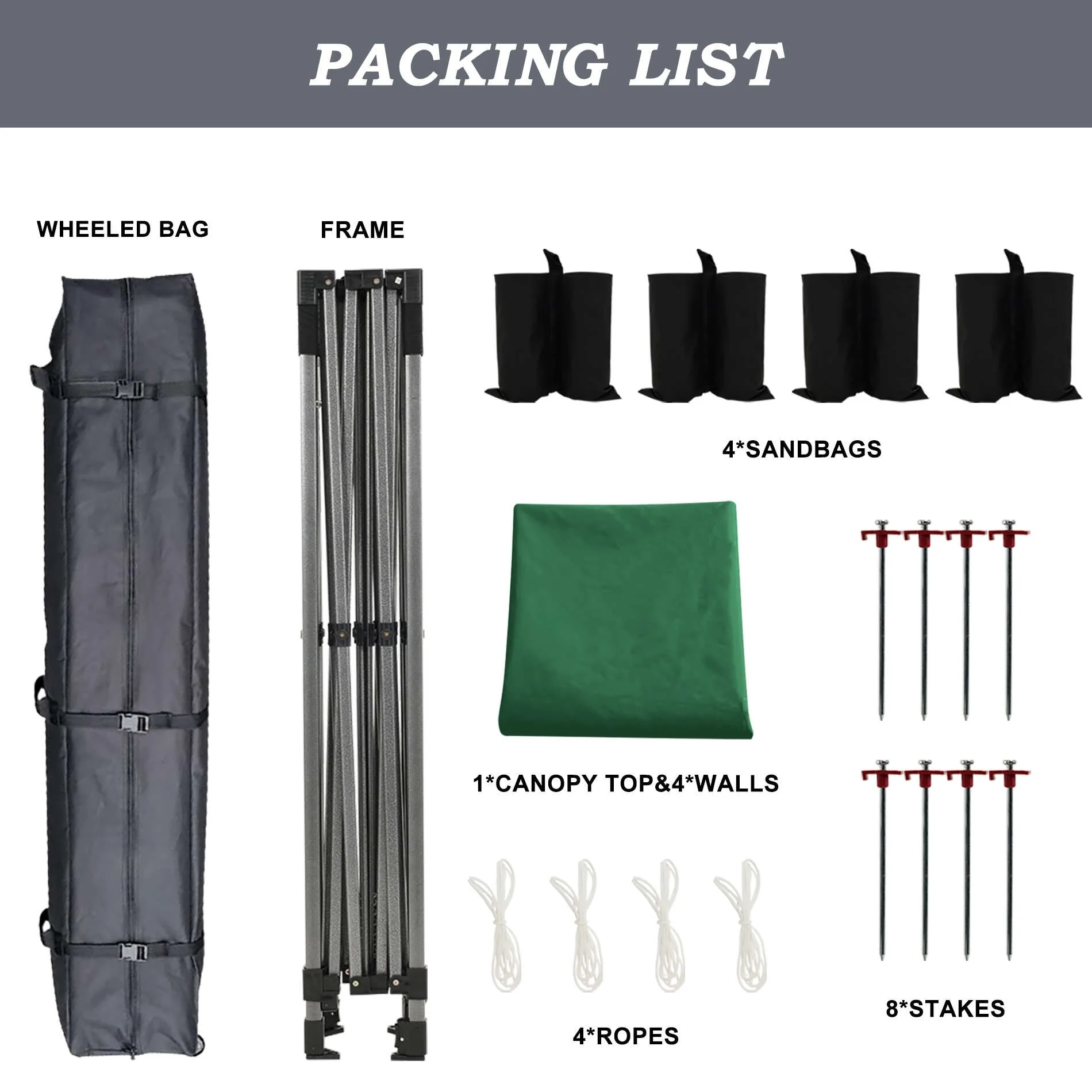 10x10 FT Pop Up Canopy Tent with Sidewall and Wheels for Outdoor
