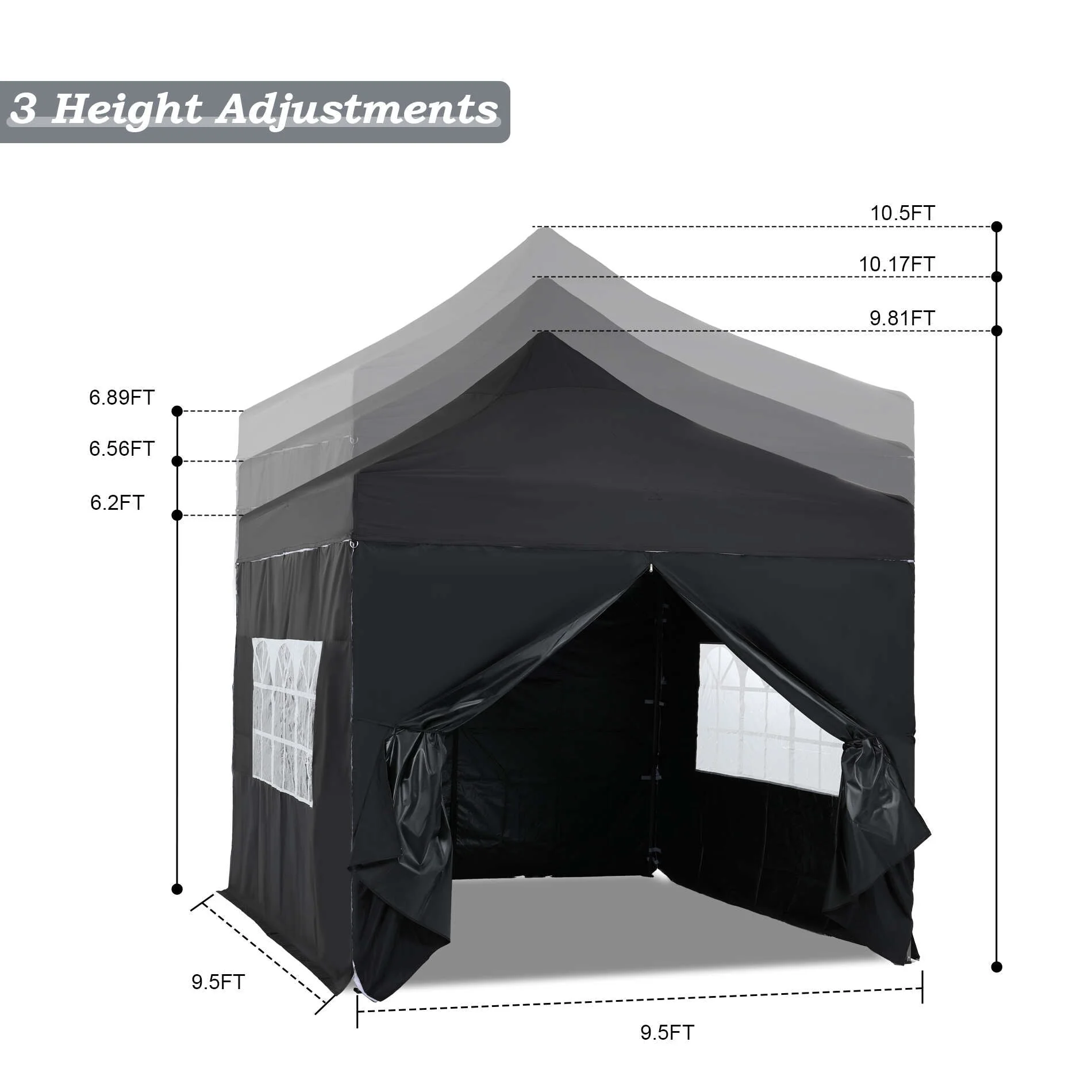 Aoodor 10 x 10 FT. Pop Up Canopy Tent with Church Windows Sidewalls, 3 Adjustable Heights - 10x10ft