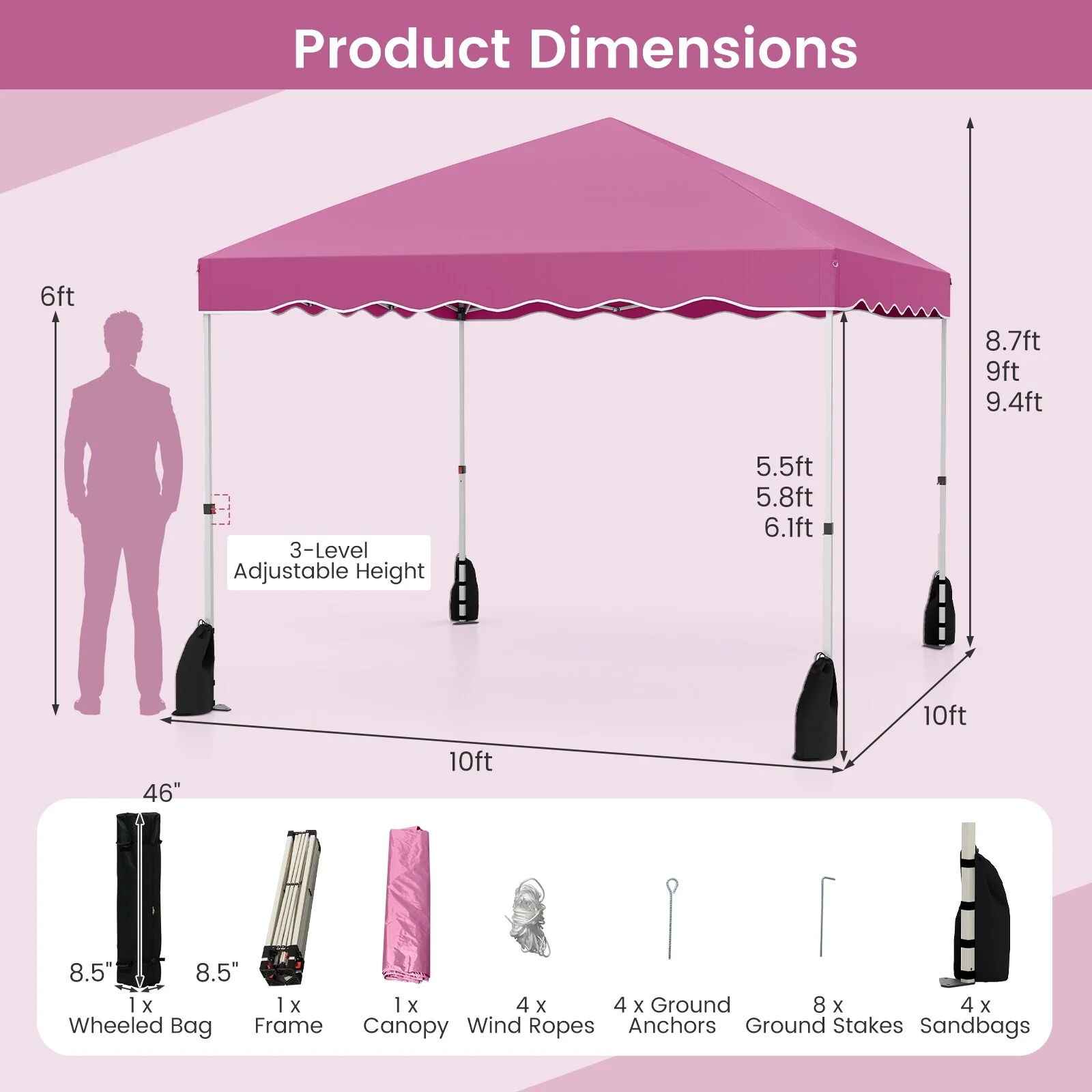 10 x 10 Feet Outdoor Pop-Up Folding Canopy Tent with 3 Height Settings and Strong Metal Frame