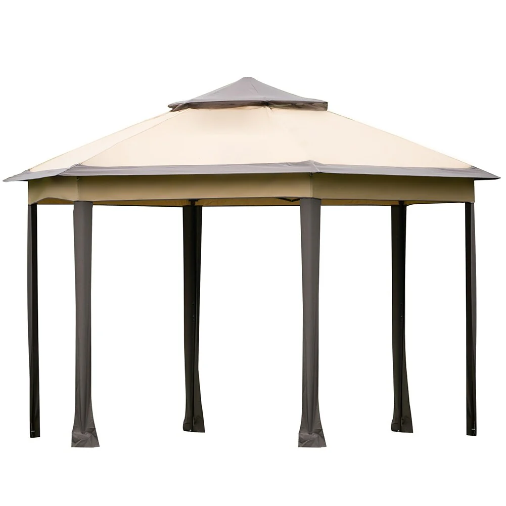 Mordern Iron hexagon Outdoor Patio Gazebo khaki