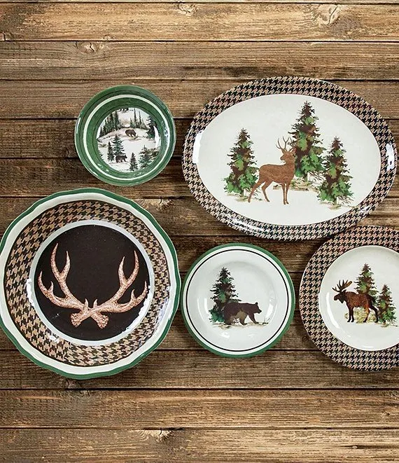 Joshua Melamine Deer Horn Houndstooth Serving Bowl