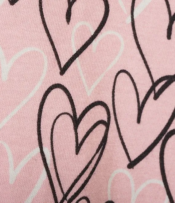 Drawn Hearts Print Scoop Neck 3/4 Sleeve Knit Coordinating Sleep Top