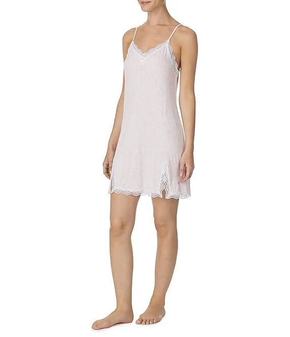 Jersey Knit Zebra Print Sleeveless V-Neck Lace Chemise