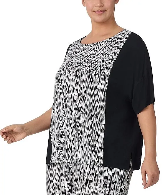 Plus Size Knit Textured Ikat Print Short Sleeve Coordinating Lounge Top