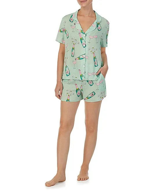 Satin Bubbly Floral Short Sleeve Notch Collar Shorty Pajama Set