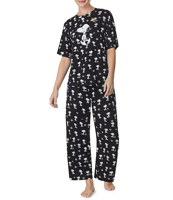 Short Sleeve Round Neck Coordinating Snoopy Print Knit Jersey Sleep Shirt