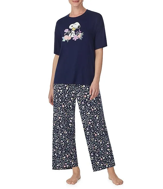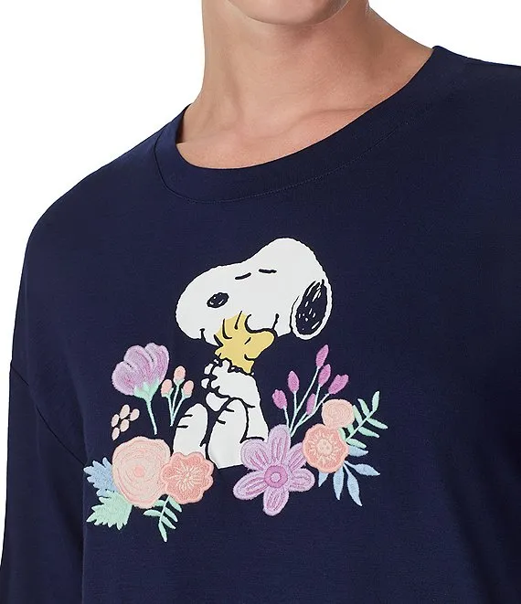 Snoopy Short Sleeve Round Neck Coordinating Stretch Jersey Knit Sleep Top