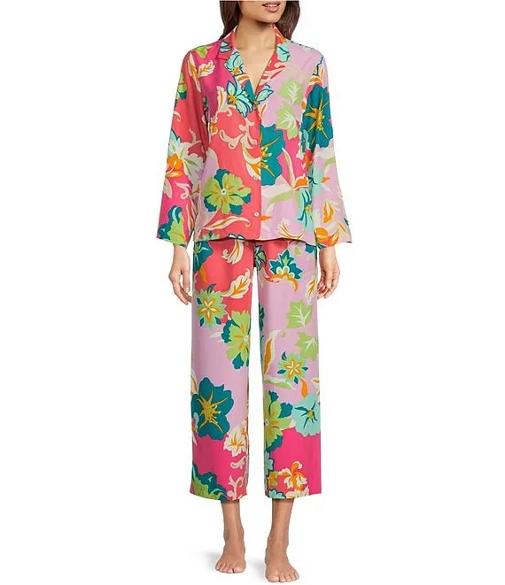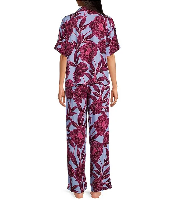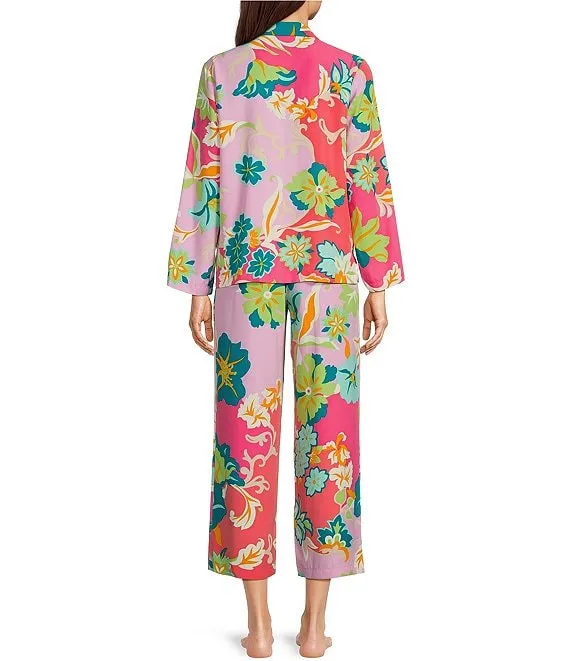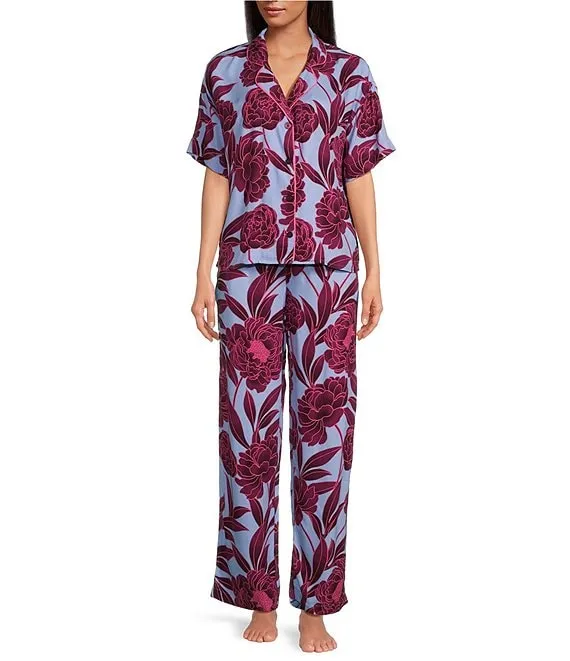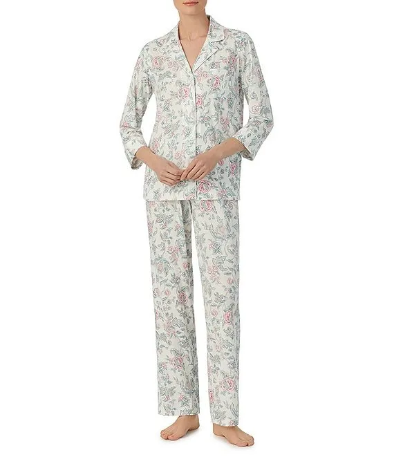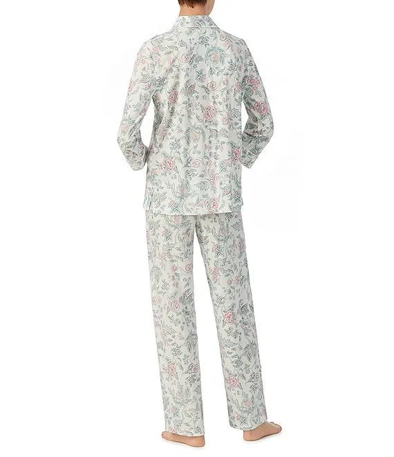 Lauren Ralph Lauren Floral Print 3/4 Sleeve Notch Collar Long Pant Pajama Set